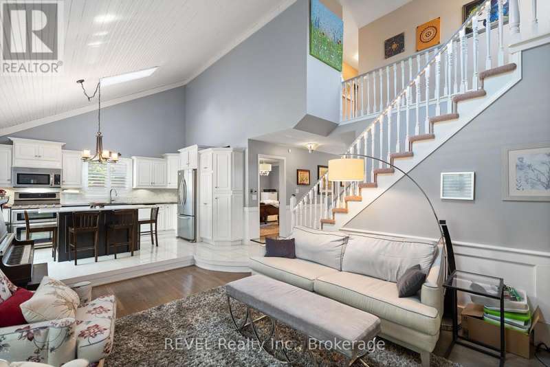 Welcome to this executive 3+1 bedroom, 3+1 bathroom home nestled within the sought after neighbourhood of St. George's Point. With over 2,000 sq ft of total living space, this home features an open concept main floor with beautiful vaulted ceilings and skylights letting in excellent natural lighting, hardwood flooring and gorgeous kitchen with granite countertops and new garburator. Step down from the kitchen to the bright family room with cozy gas fireplace. The main floor also features a great dining room space, home office area and main floor laundry. Upstairs you will find 3 ample sized bedrooms including the master bedroom with 4 piece ensuite. The lower level features a large recreation room, 4th bedroom, 3 piece bath and storage areas. Step outside in the backyard and enjoy your morning coffee in tranquility within a large fully fenced rear yard with generous sized deck and in-ground pool. Perfect for hosting pool parties and gatherings throughout the warmer months! This home has easy access to the QEW and within the well-known Port Dalhousie area of St. Catharines. (id:7434)