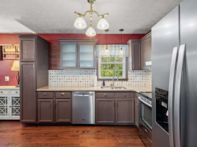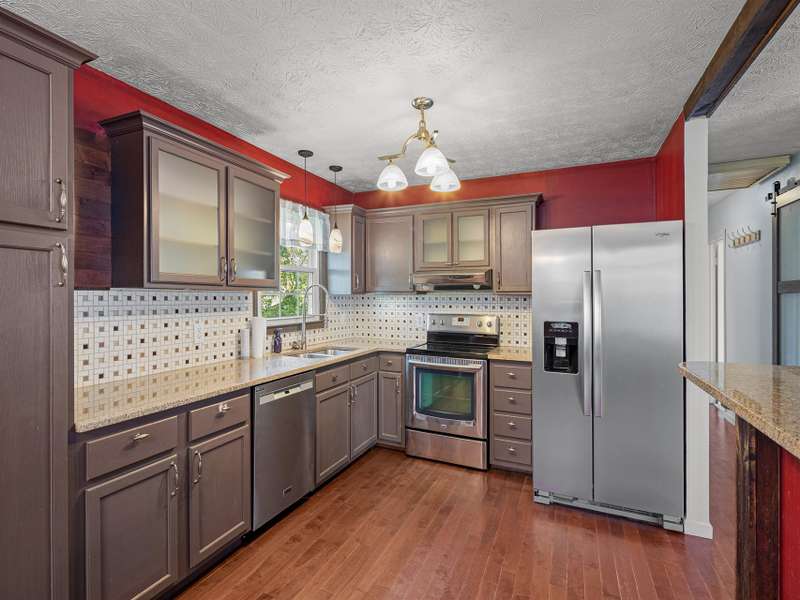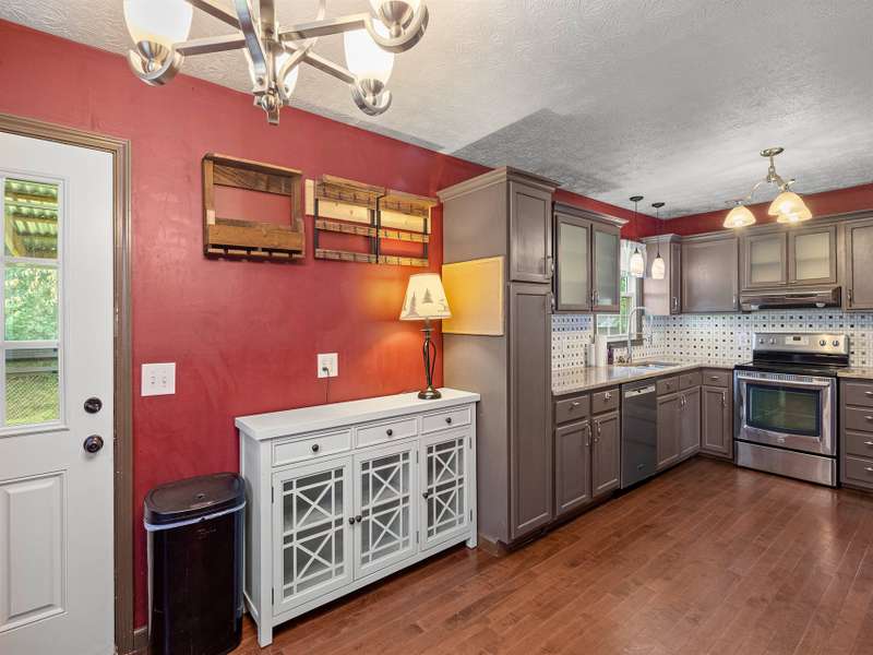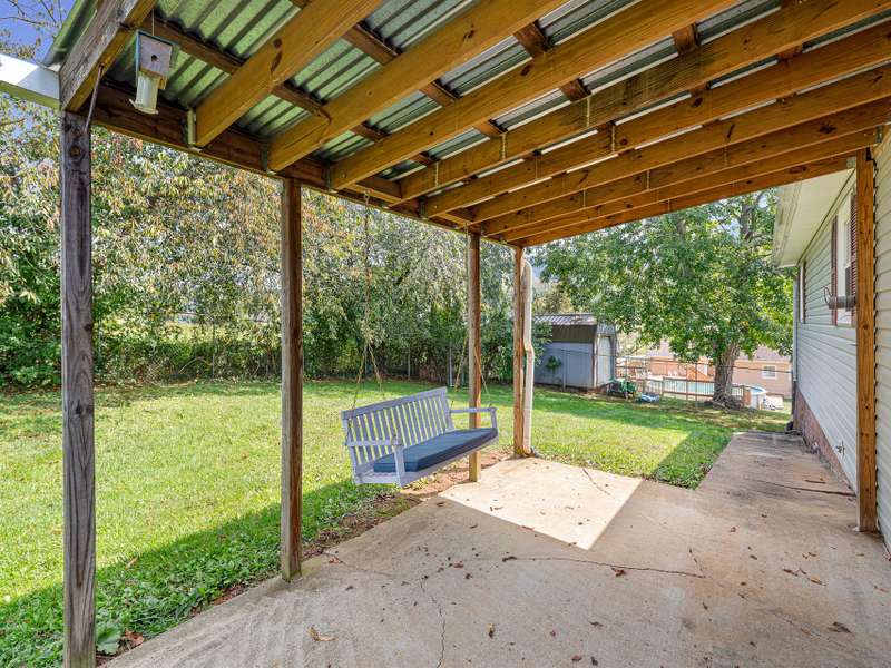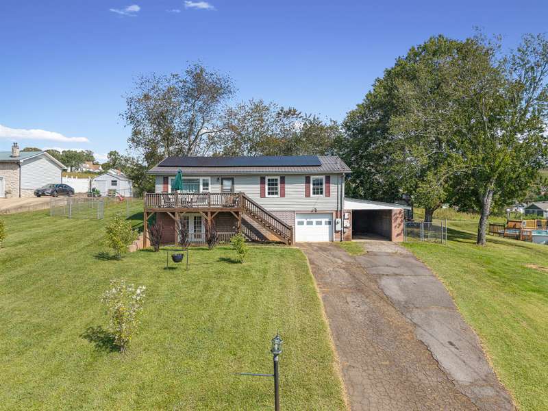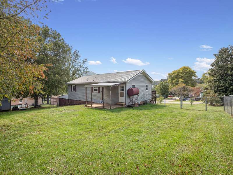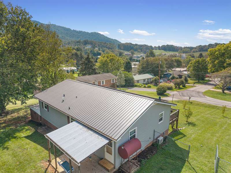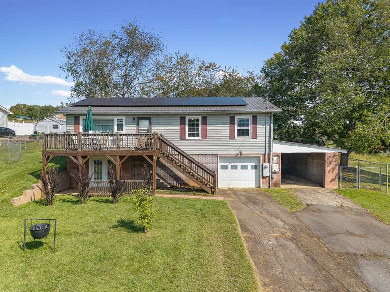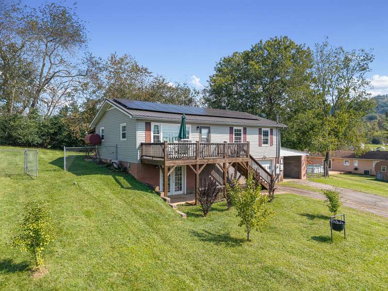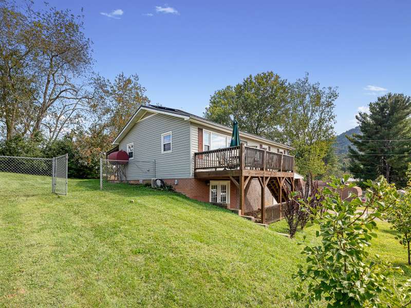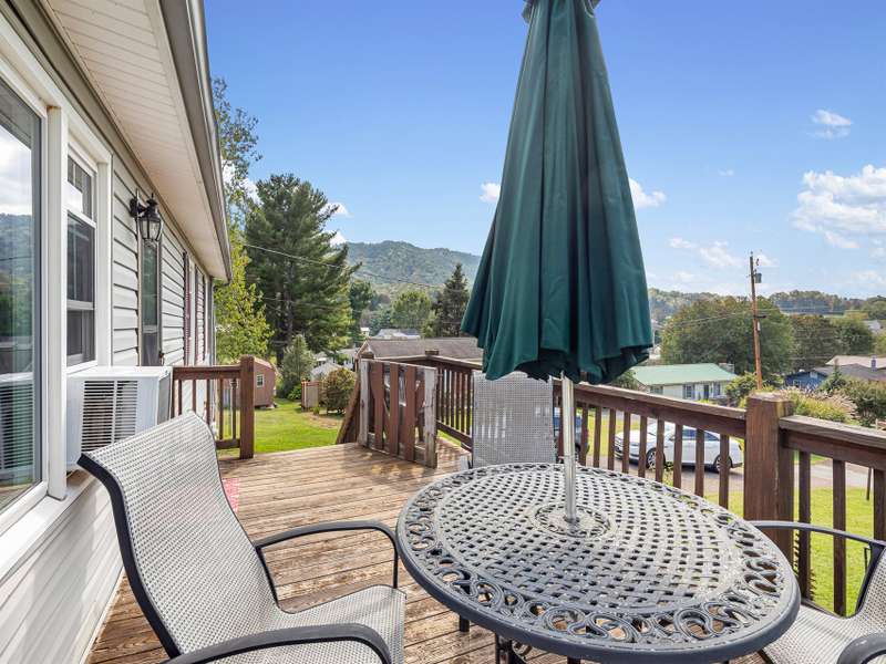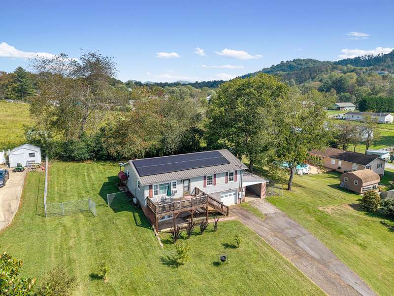 Situated just less than 30 minutes from vibrant Asheville, NC, this beautiful 3-bedroom, 1-bath brick and vinyl home is nestled in a well-established neighborhood located in the quaint mountain town of Clyde. Meticulously maintained and freshly painted, it boasts a kitchen equipped with stainless steel appliances, gleaming granite countertops, and a stylish tile backsplash. The basement level offers a brand new mini-split for efficient heating. Breathtaking mountain views from the front porch are yours thanks to its desirable west-facing orientation. The fully fenced, private backyard provides an escape to unwind at the end of the day! With a durable metal roof featuring solar panels, an oversized 1-car garage, and an attached carport guarantee ample room for parking and storage. Come home to where history and charm blend with modern suburban living that make coming home a true delight!