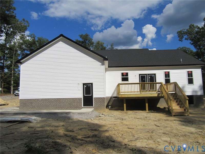 NEW CONSTRUCTION. This will be an extremely nice 3 bedroom, 2 bath, vinyl sided rancher on 3.4 acres. The great room, dining room and kitchen will have hardwood floors and have an open floor plan. There will be a vaulted ceiling in the great room. The kitchen will have custom cabinets and granite counter tops. The primary suite will have a tray ceiling, walk-in closet, dual vanities and a garden tub and separate shower and is on the opposite end of the home from bedrooms 2 and 3. There will be a back deck and a concrete front porch. Conveniently located mile from Rt 1 between exits 53 and 61 of I-85, it is less than 20 minutes from Colonial Heights and 40 minutes from Richmond. Taxes are for the lot only. The prefab hearth and firebox shown on the floor plan is not included at this price.