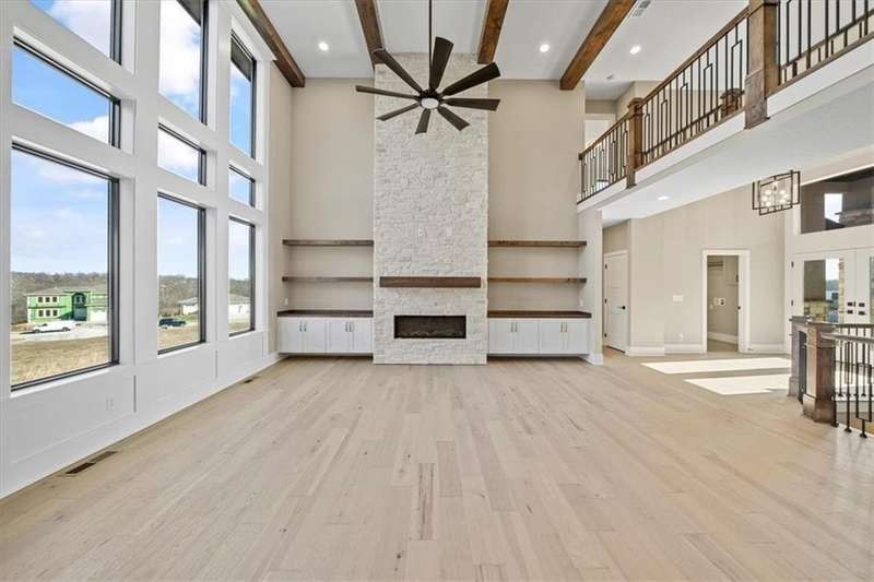 The "Layla" Floorplan is here! Located on a beautiful Level Lot backing to trees. This 1.5 Story plan is everything you have been looking for! As you enter through the gorgeous double doors to the grand entry next to the stunning staircase, you have an ample amount of natural light gracing your Great Room with fireplance, Dining Room and Kitchen. Access to the covered patio is off the Dining Room. The Master En-Suite is behind the Great Room with a wet room shower with stand alone tub for the serene spa experience, double vanity, next to walk-in closet and connected to Laundry Room. The opposite side of the main level is Bedroom #2 with its own bathroom with a tiled shower. Up the stairs is a catwalk connecting 2 bedrooms and a bathroom with double vanites and walk-in closets to the other side with bedroom #5 with its own bathroom, shower over tub and walk-in closet. Option to finish the basement. All in the coveted Heritage Ranch, A Lambie-Rieke Community, with Amenities Galore such as state-of-the-art pool, clubhouse, trails, pickleball. play area, half-court basketball, Putting Green & ponds and so much more coming soon! This community provides a wonderful lifestyle and right next to the 1,238 Acre Heritage Park with Dog Park, Sports Parks, Golf, Lake, Trails and so much more! Contact Onsite Agents for Estimated Completion of homes on site, and design selections. Our Welcome Center Office will be open soon. We are available 7 days a week for showings of Models & Specs throughout the KC Metro. Renderings &/or images may show features and sq ft that are subject to change. SPEC HOME IS UNDER CONSTRUCTION AND NOW UNDER ROOF on LOT 107. With an Estimated Completion of DEC 2025. Welcome Home to Heritage Ranch - one of the last NEW Home Communities in Johnson County!