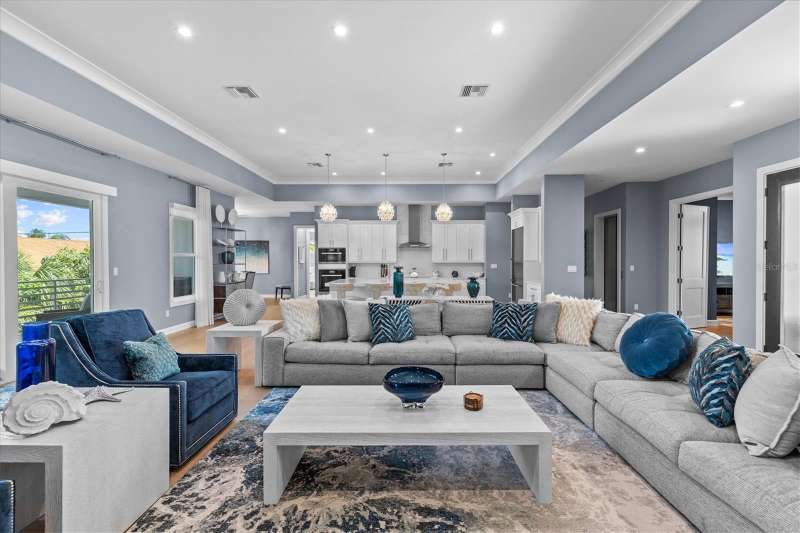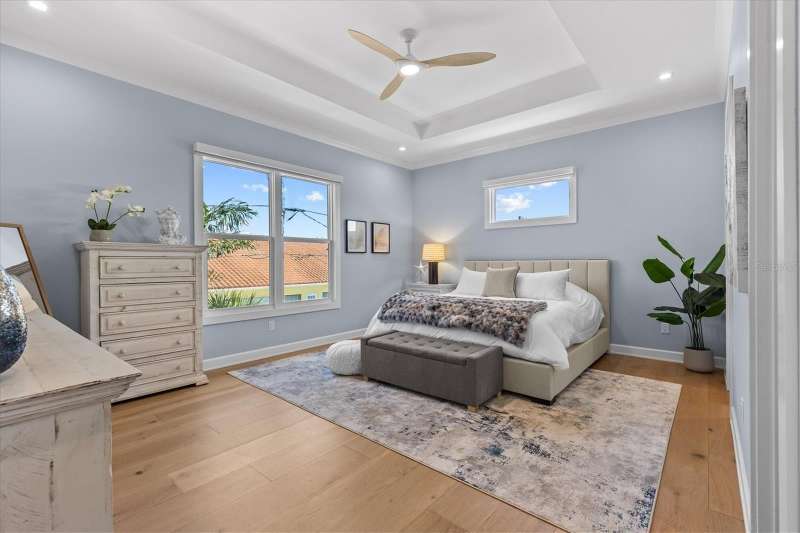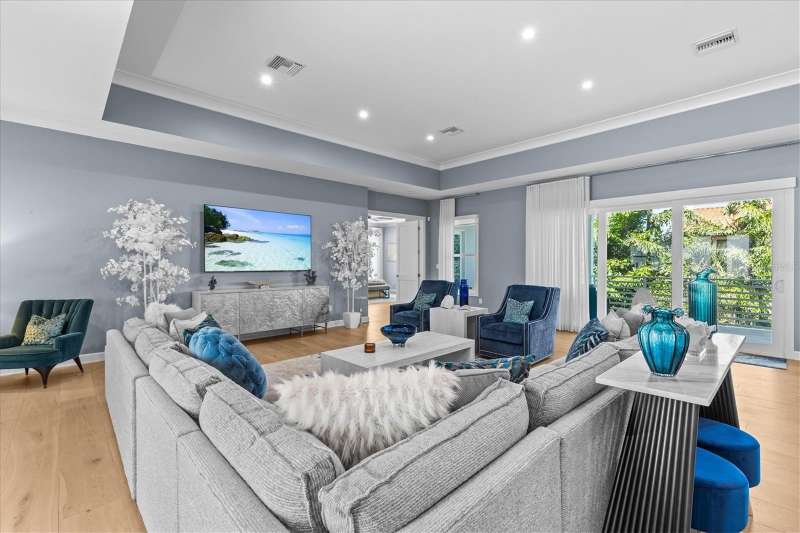 Experience a turn-key coastal retreat where design, craftsmanship, and comfort converge. Resting confidently on a rare double lot, this exceptional residence embodies the art of refined living. Boasting 4 bedrooms + bonus room, 4 ½ baths and a remarkable 14-car garage, this full block, two story construction home is just a few steps away from an exclusive residential access point to the pristine sands of Belleair Beach! Meticulously designed and exquisitely finished, this single-level, three-split floor plan harmonizes private spaces with expansive, flowing interiors. Every detail is intentional, creating a sense of subtle opulence that invites you to slow down and savor. High contoured ceilings and oversized, hurricane-rated windows and doors bathe the home in natural light, accentuated by custom window treatments and intimate views of the Gulf and Intracoastal Waterway. European Oak hardwood floors extend gracefully through the home, elevating each room with warmth and character. The primary suite awaits behind stately double doors, enveloped in tranquility. Custom his and hers closets offer finely tailored storage, while the vast on-suite bath features a spa-inspired dual rainshower, pedestal soaking tub, private water closet, and dual vanity appointed with marble counters and Kallista fixtures. The second master suite and two additional guest quarters are elegantly distinguished and adorned with high-end finishes. The expansive bonus room provides flexible accommodation, ideal for an executive home office, media lounge or art studio. The heart of this home is a spacious, open-concept kitchen designed for entertaining. At its center, an expansive island set within a rich palette of custom cabinetry and tailored storage solutions, enhancing both form and function. State-of-the-art appliances – including Miele, Gaggenau and Viking – as well as sophisticated seating throughout, elevate the culinary experience. Indoor outdoor living is achieved with seamless access to multiple covered balconies, perfect for al fresco gatherings. Escape to your private oasis, where a stunning saltwater pool and spa await, surrounded by lush tropical landscaping, plentiful green space and a covered patio designed for outdoor living. Resort-style furnishings invite you to lounge, entertain, or simply unwind, creating the perfect backdrop for memorable weekends with family and friends, just steps from the beach. A fully modernized infrastructure, including Tesla solar power, allows for effortless living, with integrated smart home automations providing intuitive control over lighting, security, climate and connectivity. A private elevator connects both levels, ensuring comfort and accessibility. The fully air-controlled garage provides rare flexibility for collectors, automobile enthusiasts, or those seeking additional storage. Centrally located, this community is just a short drive to Tampa International & St. Pete/Clearwater Airport and provides access to a wealth of amenities, including award-winning beaches, boating, prestigious golf courses, fine dining, shopping, and world-class medical facilities. Pet-friendly and fully furnished, this unparalleled opportunity is available for annual or seasonal lease; three-month minimum term required.
