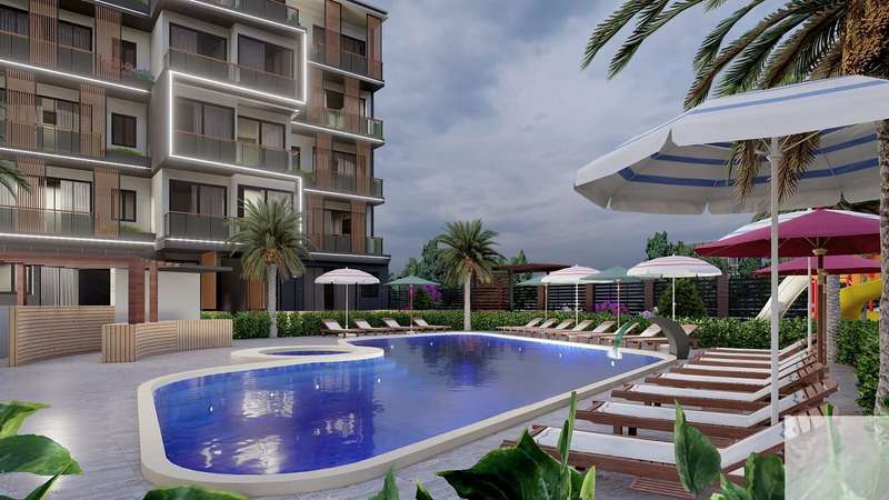 The apartments have options such as 1, 2, and 5-bedroom layouts for different kinds of lifestyles. Each unit features a spacious living room, an open-plan kitchen, a shared bathroom, an en-suite bathroom, and a balcony. Built with top-quality materials, these apartments for sale in Mersin provide a comfortable and stylish living space.