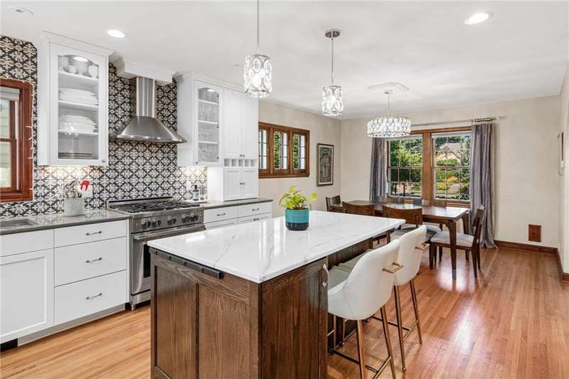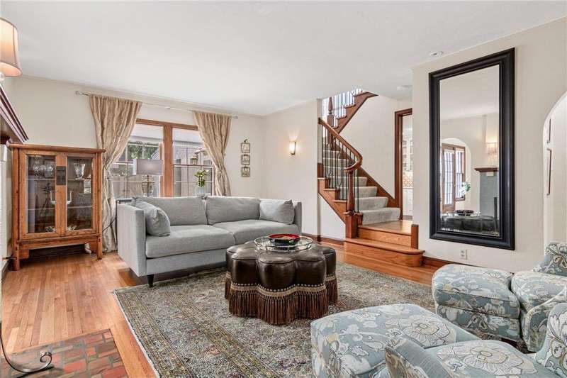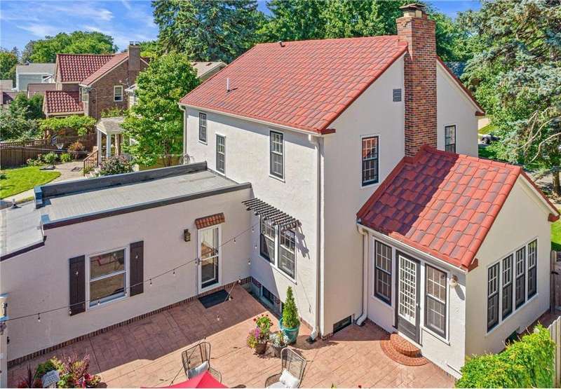 Welcome to this exquisite Spanish Colonial inspired two story home in the heart of Highland Park walkable to the river and all that Ford Parkway has to offer. This home has gone through a complete face lift with over $320,000 in updates since 2021. The freshly painted exterior and shutters as well as the powdered coated steel roof that looks like clay tile set the tone for this beautiful home. Inside you are greeted with refinished hard wood floors, beautiful archways and nice open spaces for everyday living and entertainment. The kitchen was opened into the dining room with beautiful custom white cabinetry, quartz countertops, backsplash, large island, stainless steel appliances and beverage fridge, as well as a commercial grade gas stove top. The main level includes a large living room with wood burning fireplace and an additional sunroom with an abundance of windows great for a home office or quiet space to unwind for the day. The main level bedroom with new flooring, trim, doors and closet is steps away from the full bath making it easy for anyone needing a main level living space. Upstairs provides 3 bedrooms with refinished hardwood floors, new light fixtures and ceiling fans in each room, as well as a completely remodeled bathroom with 2 separate sinks & vanities, quartz countertops, floor to ceiling tiled walk-in shower and heated floors. The lower level features a cozy family room with new flooring, additional fireplace, new trim and doors as well as another completely remodeled 3/4 bath and finished laundry room with new washer and dryer and countertops. This home has been updated from top to bottom which is evident even when you walk outside. You will love entertaining on your patio with new stamped concrete, thoughtful landscaping and privacy fence. This home is ready to move right in and enjoy!