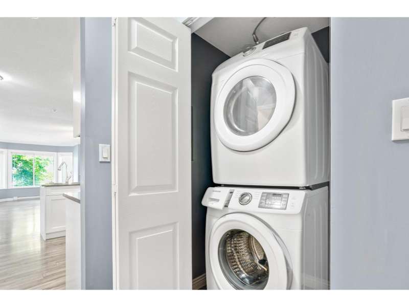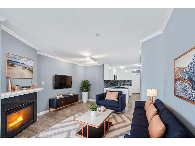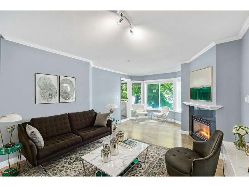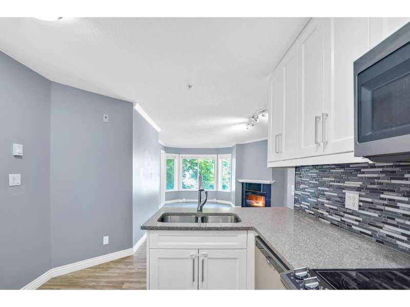 Looking for more room without breaking the bank? This fully renovated 1-bedroom checks every box. The king-sized bedroom easily fits all your furniture (yes, even the Peloton!) and connects to a cheater ensuite for everyday convenience. Love to cook? You'll appreciate the roomy, thoughtfully designed kitchen with full-sized stainless steel appliances and plenty of counter space. The open living and dining area features a cozy gas fireplace and large windows that fill the home with natural light and peaceful treed views. Step out to your private patio for morning coffee or evening wine surrounded by greenery-it's your own little escape. All this in a walkable location close to transit, shops, restaurants, and schools-everything you need, right where you want to be. Showings by appt only. (id:58403)