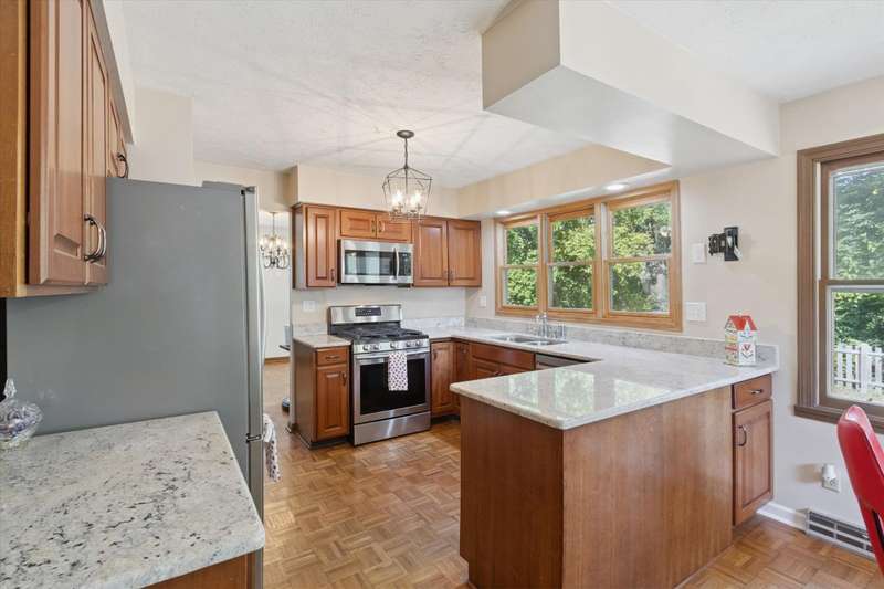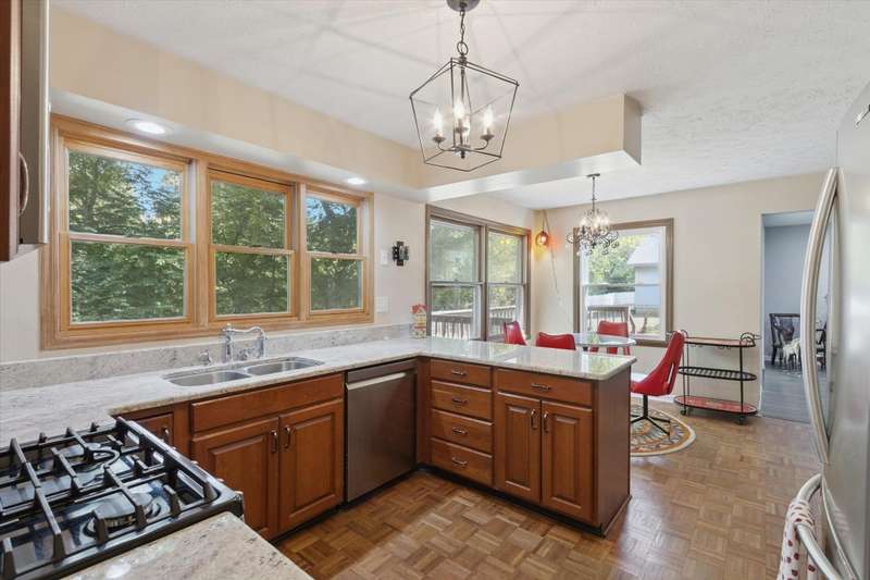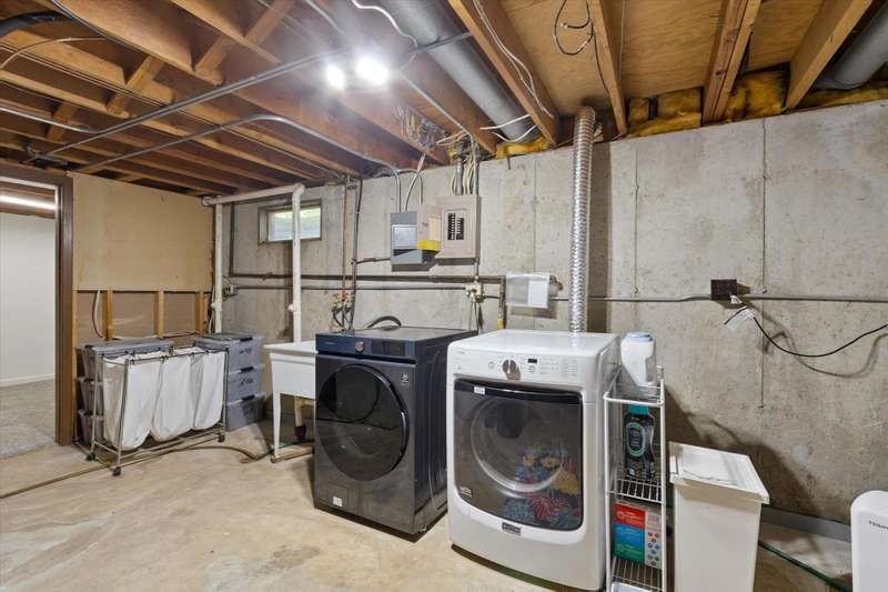 Welcome to this stunning two-story gem in the Creekside neighborhood! From the moment you pull into the spacious 2-car garage, you'll feel right at home. Inside you will find a bright and inviting layout featuring a large formal living room and an elegant formal dining room, perfect for entertaining. The peninsula-style kitchen is a showstopper with granite countertops, hardwood and tile flooring, and plenty of space to cook and gather. Cozy up in the family room by the gas fireplace, or head downstairs to the finished basement complete with a wet bar-ideal for game nights and hosting guests! Upstairs, you'll find three large, equal size bedrooms and two full bathrooms that have been newly renovated, while the main floor offers a convenient half bath. Enjoy the mix of hardwood, tile, and plush carpeting throughout. Energy-efficient owned solar panels (not leased or loaned!) keep utility costs low and eco-friendly living high. Outside your door, the Creekside community delivers fantastic amenities including a sparkling swimming pool, tennis courts, and a fun-filled playground. This home truly has it all-style, comfort, and community charm!