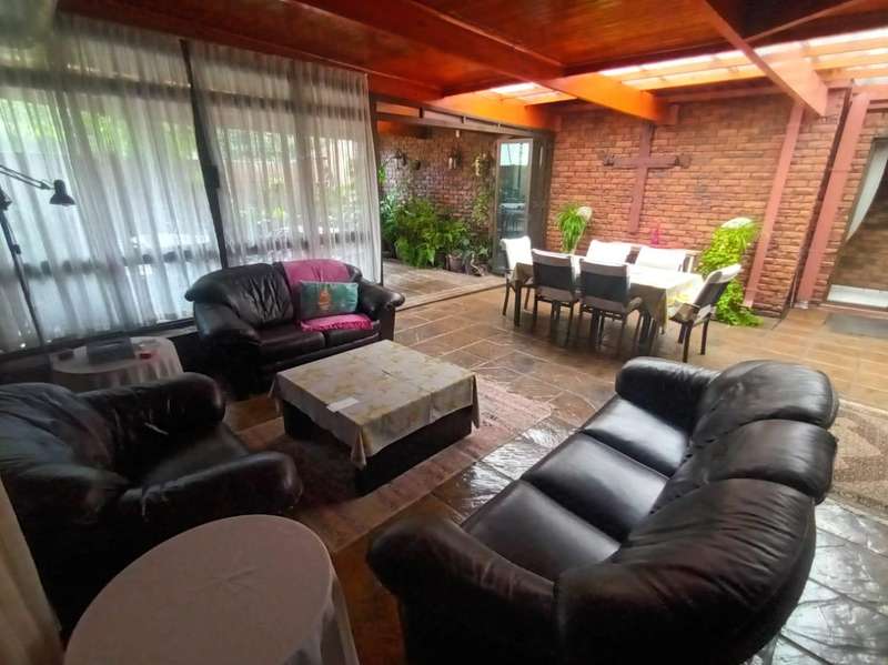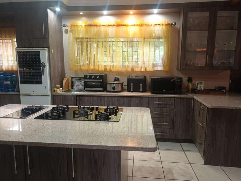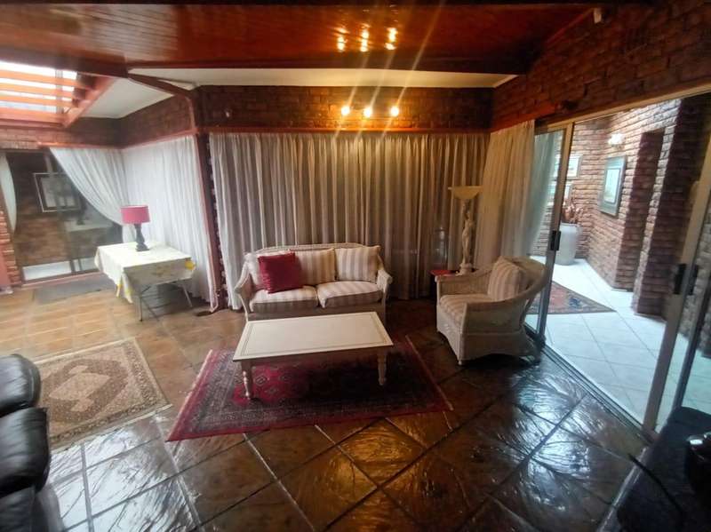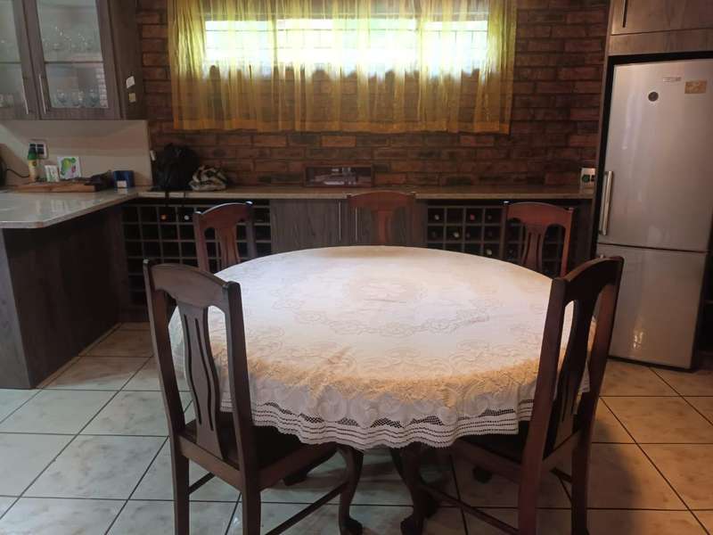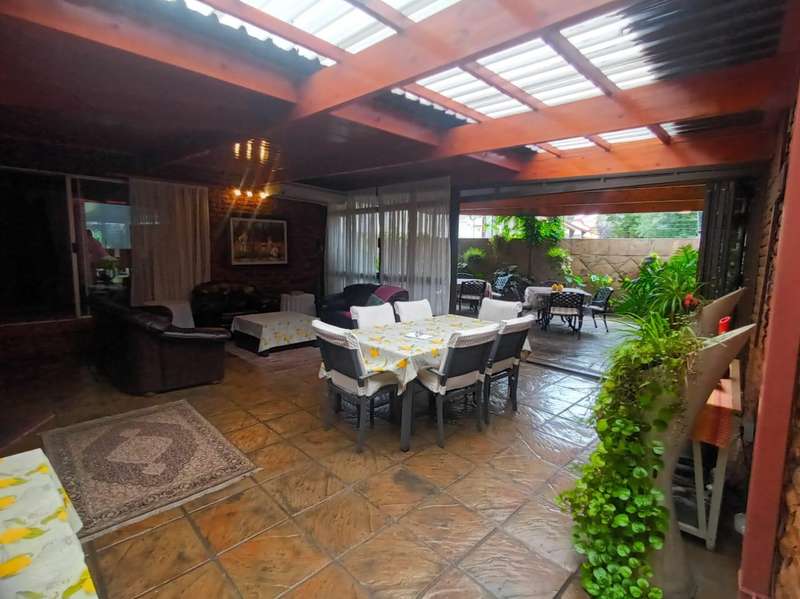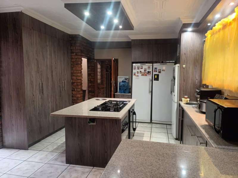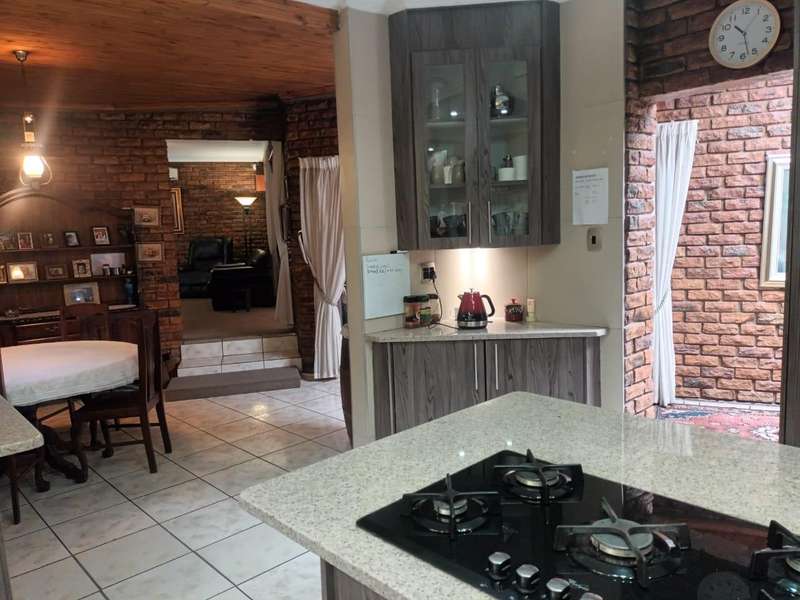 This exceptional property is a dream home for extended families and those who love to entertain. Nestled in an upscale neighborhood, this spacious and low-maintenance residence offers a perfect blend of comfort, elegance, and functionality. The home features four well-appointed bedrooms and four fully tiled bathrooms, including a main en suite. The 4th bedroom offers a kitchenette, and bathroom providing an ideal space for guests or extended family. Living areas include a lounge, TV room, study, hobby room, and a dining room, all complemented by a modern kitchen with ample cupboard space, a gas stove, and a separate scullery. Built-in cupboards throughout ensure ample storage, while a combination of tiled and carpeted flooring enhances the home?ÇÖs warmth and character. Entertainment is at the heart of this property, boasting three separate entertainment areas. A large outdoor space is perfect for hosting gatherings, a smaller, intimate area features a serene water feature, and another entertainment space is ideally positioned next to the sparkling pool. Additional features include a spacious storeroom, three garages?Çöone with extra height, making it ideal for a caravan or boat?Çöand a rear carport accommodating two more vehicles. The beautifully designed pet-friendly garden is well maintained with two boreholes and two JoJo tanks, ensuring a reliable water supply. Security is top-notch, with an alarm system, CCTV surveillance, an electric fence, and an automated gate providing peace of mind. This home is truly a rare find. Don?ÇÖt miss out?Çöcall today to schedule a viewing!