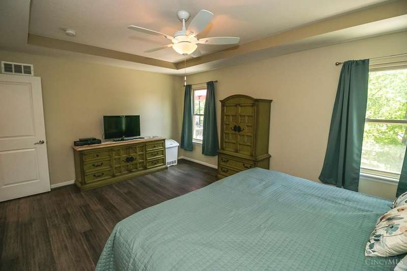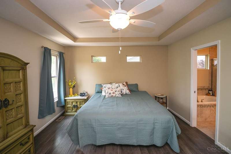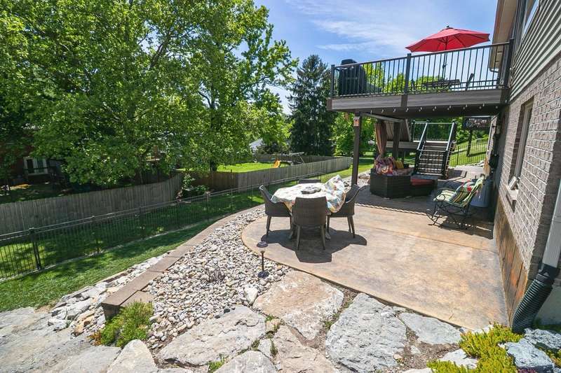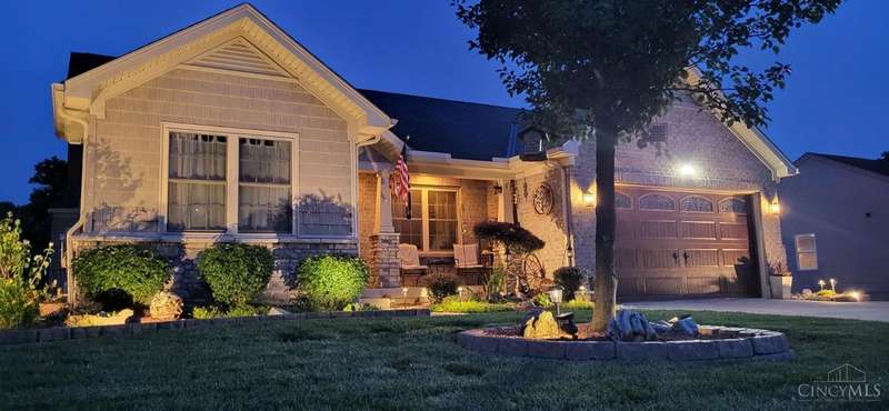 Celebrate the holidays in YOUR new home! Ample space to host friends & family this season! Full of amenities and upgrades throughout. Exceptional main floor living design. Three split bedrooms on the primary floor incl Main Suite w/ Garden Bath and additional bedroom with full bath in the walkout, finished lower level. True 4 bedrooms/3 full baths offering ~2,700 finished SF. From hammered iron railings, open concept Kitchen/Great Room w/ granite counters, vaulted ceiling, neutral color palette to the hardwood look of luxury flooring. 1st floor laundry w/ built-in sink & cabinets. Two-tone, composite deck overlooking the expansive stamped patio (w/ 5' walkways up each side of the house). 5' aluminum fence encases the rear/side yards. Enhanced landscape lighting, upgraded Pella double hung windows, insulated carriage garage door, newer entry doors + more. Close proximity to Hamilton's offerings!