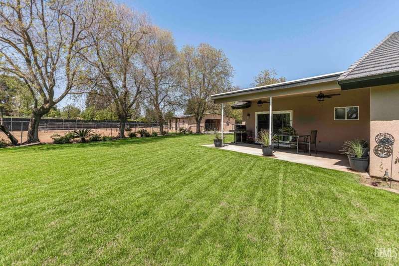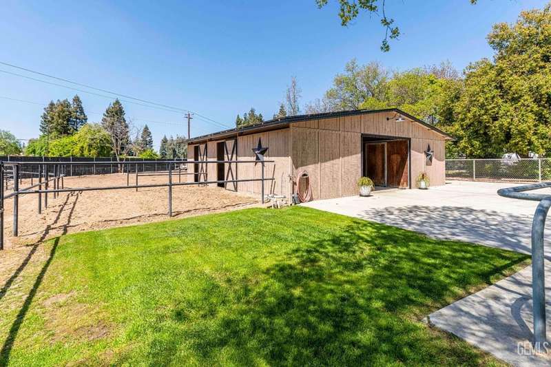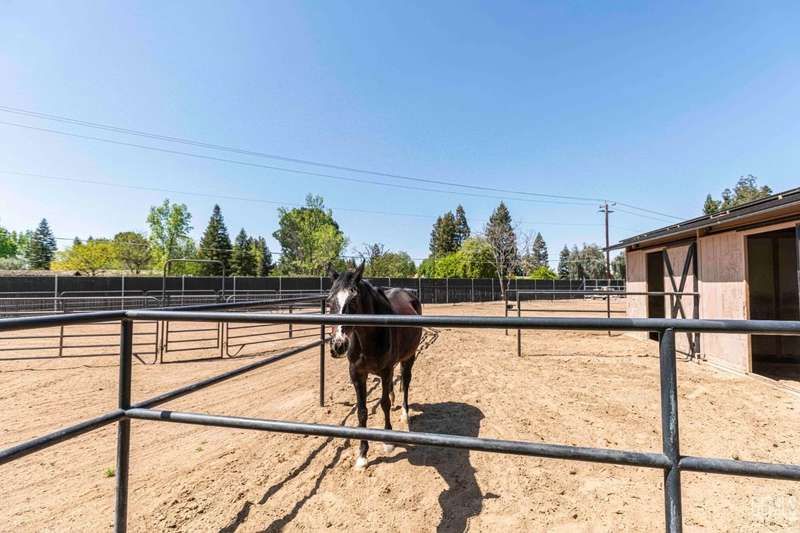 Beautifully remodeled 1-acre horse property in Harvest Ranch. Upgrades include OWNED SOLAR, LVP, NEW windows & sliding doors, high-end kitchen w/custom cabinets, bathrooms w/quartz counters & oversized shower w/floor-to-ceiling tile & frameless glass enclosure in primary bathroom. New interior paint, door trim, modern baseboards, recessed lighting & new light fixtures. New exterior stucco and paint, NEW tile roof and NEW HVAC system. Spacious family room full of natural light, w/lovely fireplace & soaring vaulted ceiling. Mud/laundry room has custom white cabinets & utility sink. Horse barn contains 3 stalls, 2 with direct outside turnout access, workshop & tack room. Fenced corrals w/plenty of room for riding. RV parking w/ 2 sets of hookups and 1 dump station. In addition, the front of the house has custom wrought iron & wood fence with large gate for easy front to back pull-thru access. Front yard is lushly landscaped and backyard boasts a huge green lawn w/mature shade trees.