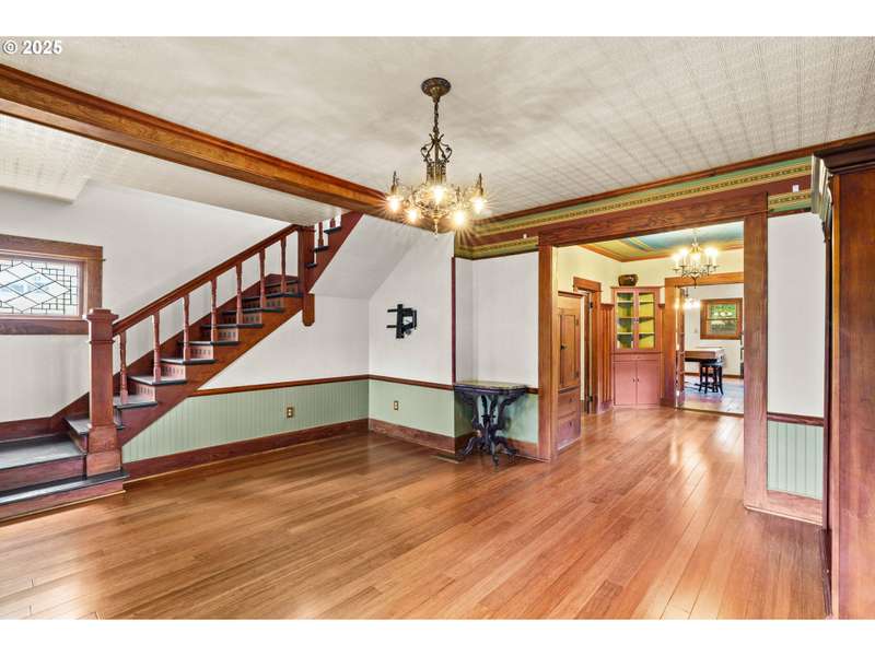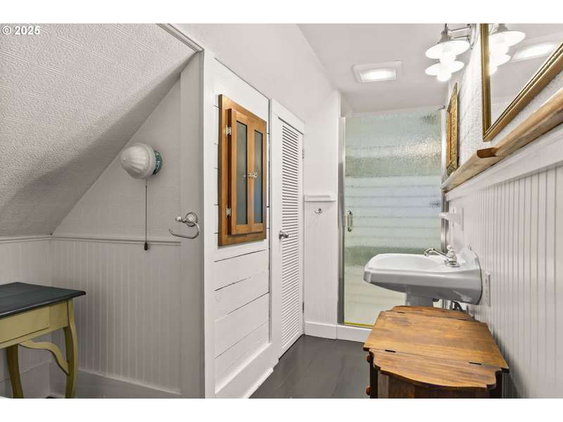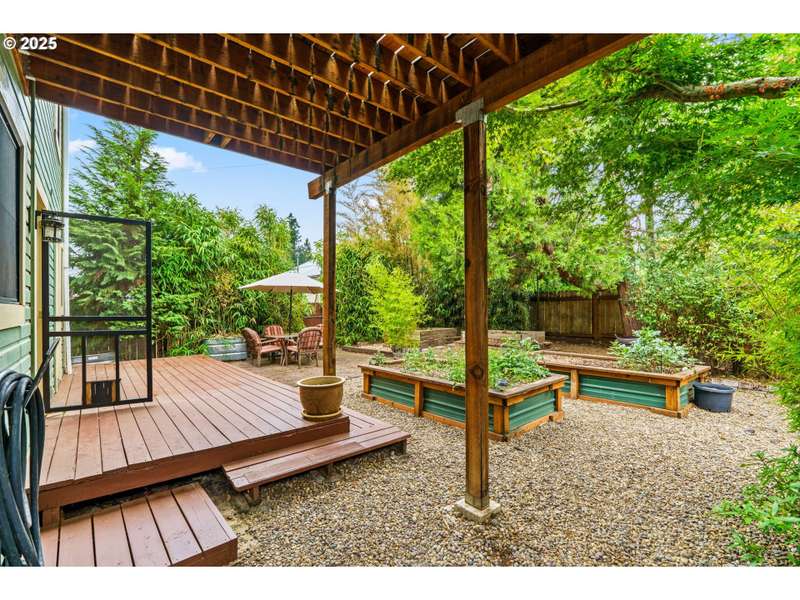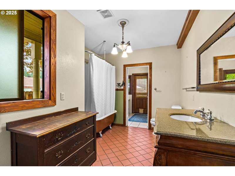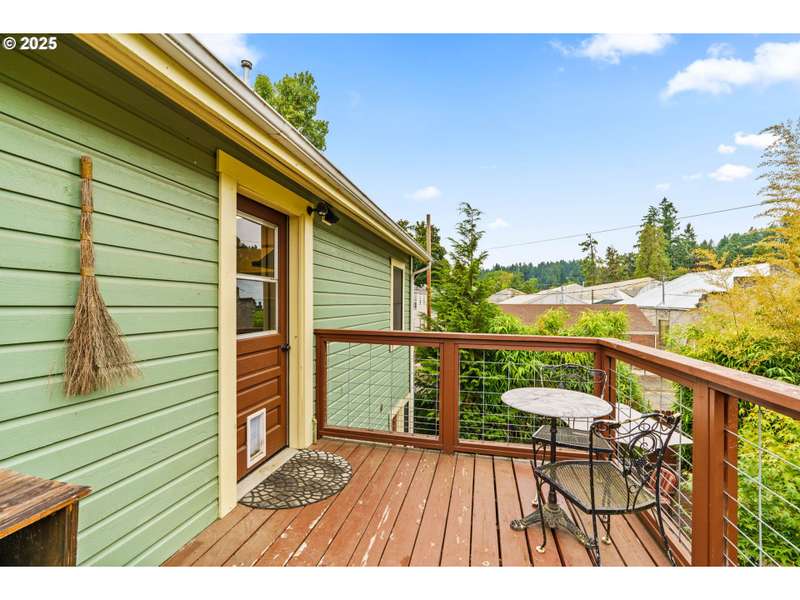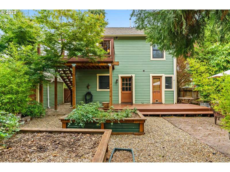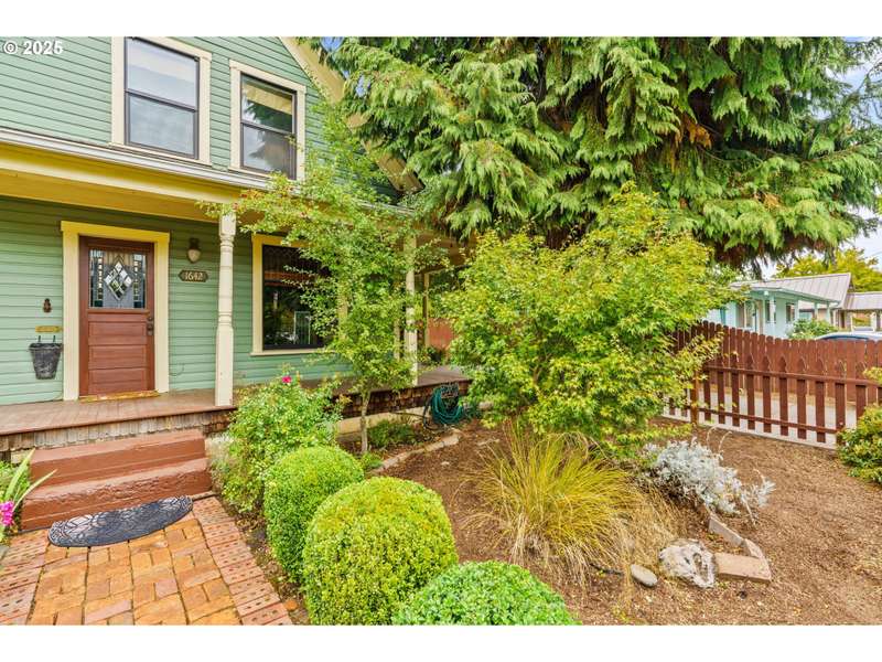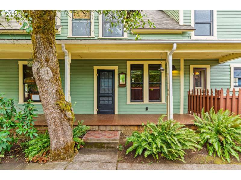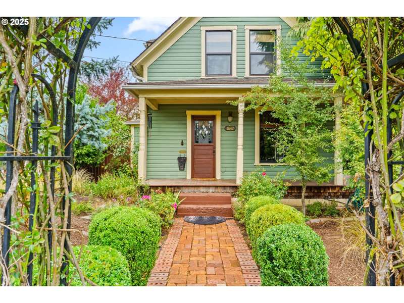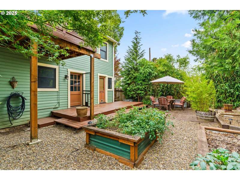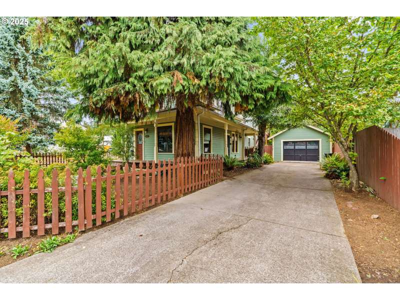 Step back in time with this lovingly restored 1910 home that blends timeless charm with modern functionality. Nestled in the heart of Cottage Grove’s Historic district, this unique property offers 2 bedrooms, 2 bathrooms in the main house, with part of the upstairs thoughtfully converted into its own 1 bedroom, 1 bath living space with a separate entry outside. The main home has been carefully preserved to honor its historic character, featuring vintage details throughout, bamboo, original hardwood and tile flooring, and a spacious kitchen highlighted by an antique cooking stove and a vintage wood island that serves as the centerpiece. From the moment you step onto the covered porch, you’ll feel the warmth and character of this one-of-a-kind residence. The additional 1 bed / 1 bath living space provides plenty of room for extended family, guests, or rental income-complete with its own generous layout and private deck. The backyard is designed for both beauty and function with raised garden beds, low maintenance landscaping and ample space to enjoy the outdoors. A detached garage offers additional flexibility with a separate finished room that’s perfect for a home office, art studio, or hobby space. Located within minutes of local shops, restaurants, and the charm of downtown Cottage Grove, this home is not only a rare find but also a true piece of history ready to be cherished by its next owner. Schedule a tour today!