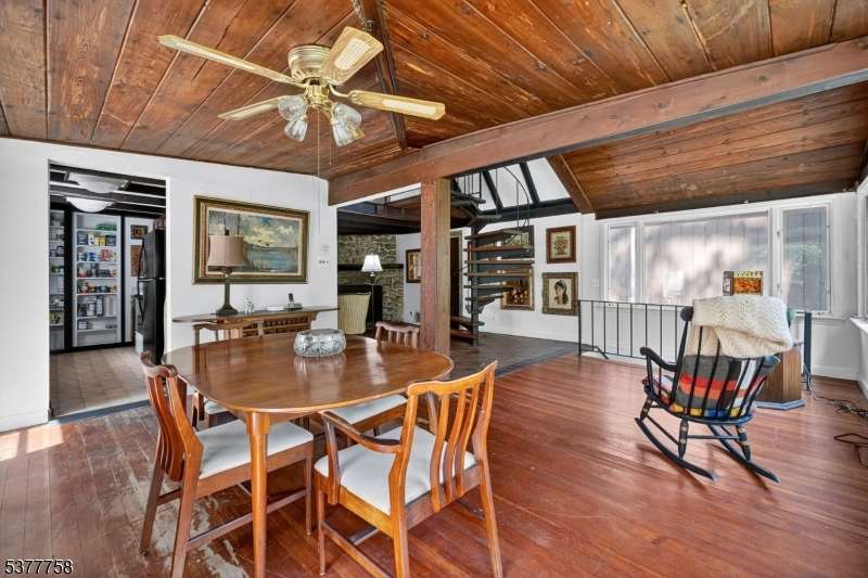Live every day on vacation in this Crane Lake-style home located on over .5 acres in picturesque Lake Mohawk near Beaches 5 and 6. Enter this truly unique Lake-style home and view the soaring beamed ceiling, many oversized windows and a cozy stone fireplace. All creating an inviting atmosphere to enjoy nature or snuggle up in front of the fire. This 4 Bedroom, 3 Full Bath home has room for everyone whether you are searching for a year-round home or a seasonal get-a-way. This home features hardwood floors, a pecky cypress ceiling in the Living Room and Dining Room and a wide spiral staircase. The Family Room offers a wood burning stove and access to the oversized deck. Enjoy a private Deck off the Primary Bedroom. New septic 2021.The Lake Mohawk Country Club offers dining and event spaces overlooking the lake. Enjoy a cocktail at the club and watch the stunning sunset over the lake. Sparta is 1 hour from NYC. 30 minutes from Ski resort and water park, (Mountain Creek). 30 miles from Delaware Water Gap.