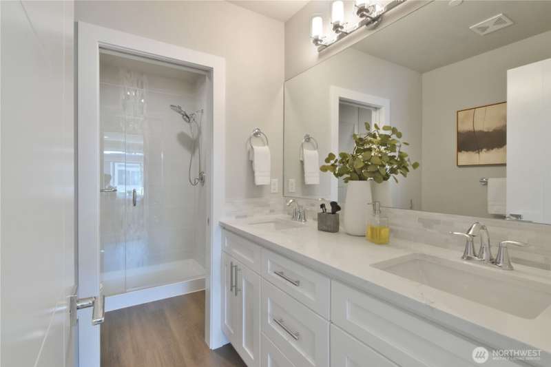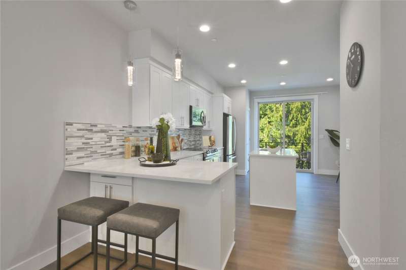 Fall in love with this barely lived in home. With more square footage than comparable new builds & rare tandem 2-car garage, this home delivers exceptional value. Only $60/month HOA dues & a pristine inspection ensures move-in readiness. Bright, open living space features 10' ceilings, 8' sliders, transom windows, designer trim & LVP. The chef’s kitchen is accented with quartz counter island, soft-close cabinets, & under-cabinet lighting. Stay comfortable year-round with ductless mini-split. Enjoy your own private back deck & small yard. Oversized tandem garage includes shop space, storage & EV charger. Community highlights include green space, trails, dog-run. Just minutes to downtown Edmonds, the beach, dining & 5 min. to amenities.