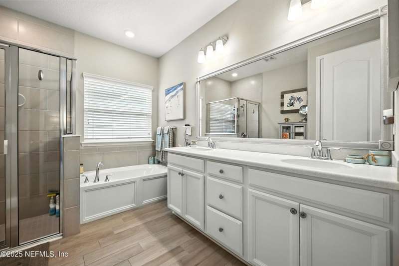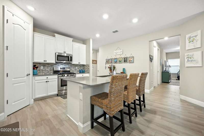 PRICE REDUCTION!!WELCOME TO YOUR DREAM HOME in one of Jacksonville's most desirable gated communities This impeccably maintained home combines privacy, security with thoughtful upgrades throughout. A brick paver entry & lush landscaping create a beautiful first impression. Inside, warm tones & abundant natural light highlight the gray wood-look tile flooring, offering both modern style & easy-care living. The spacious gourmet kitchen features white cabinetry, a center island with bar seating, under-cabinet lighting, stainless steel appliances & a GAS range - perfect for both everyday living & entertaining. The open concept family room flows seamlessly to the screened & fenced backyard. The split floor plan provides privacy for guests, while the oversized primary suite includes a spa-like bath with double sinks, a garden tub & a separate shower. Two additional bedrooms are equally inviting. Red Hawk is an intimate community of just 144 homes with a gated entrance, pool, playground & resident's club. Ideally located near the Intracoastal West, St. John's Town Center, beaches, I-295 & shopping. Additional highlights: TERMITE BOND WITH B&B EXTERMINATING, detailed improvements list available in Documents. This home shows like new & has been lovingly cared for. Schedule your showing today!
