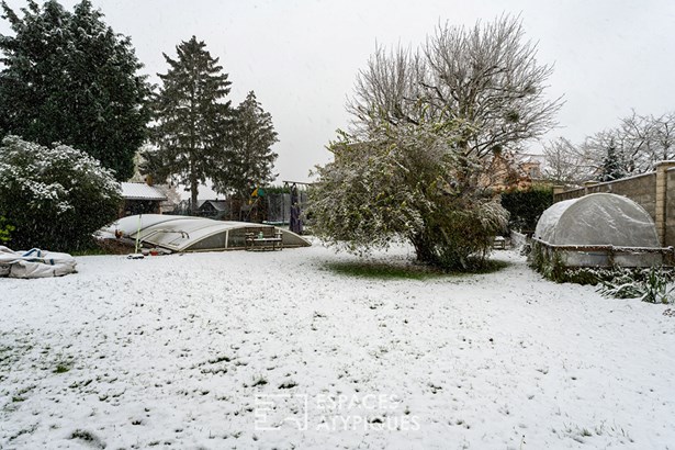 Outside, the flat garden, planted with trees and flowers, is decorated with a shed and a large courtyard allowing several vehicles to be parked. A 12 mx 5 m swimming pool, to be renovated (quote for earthworks and liner available), will delight young and old.