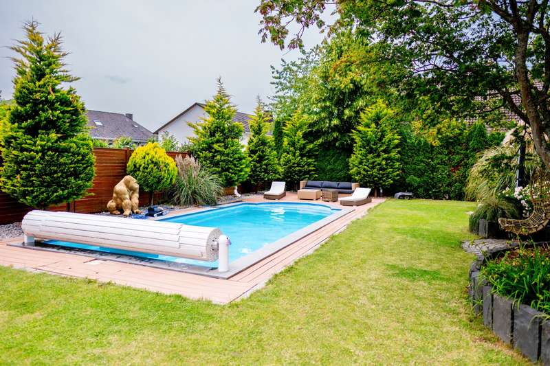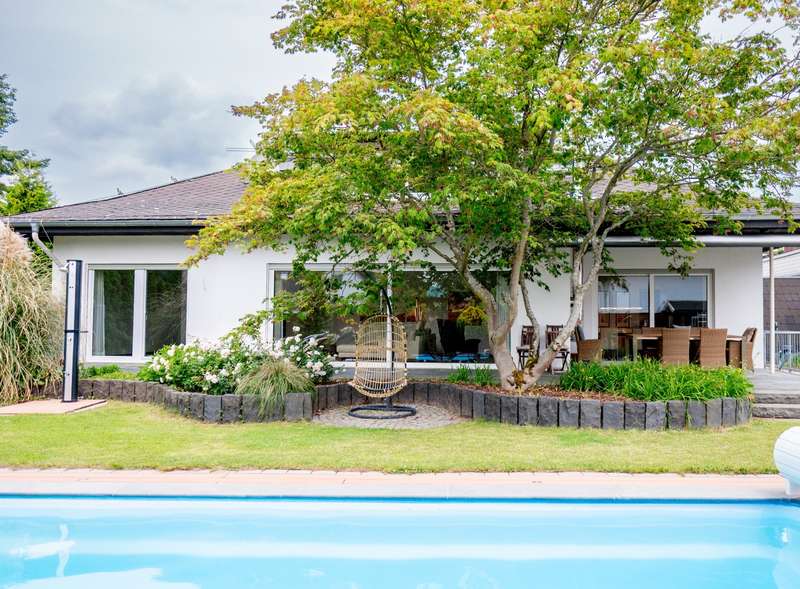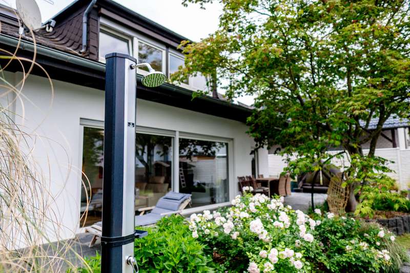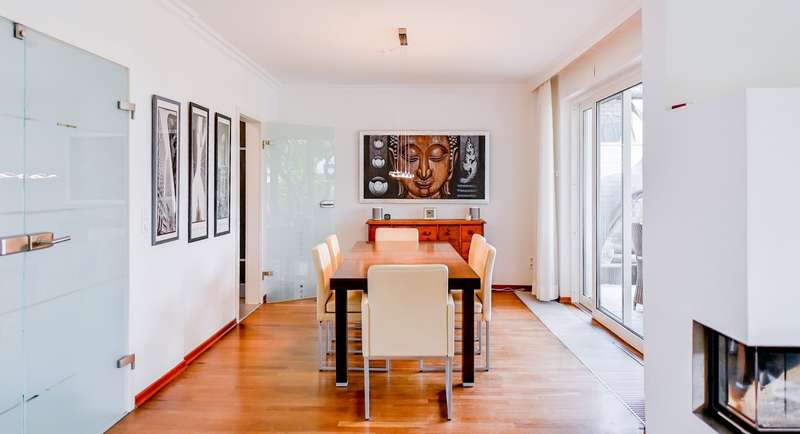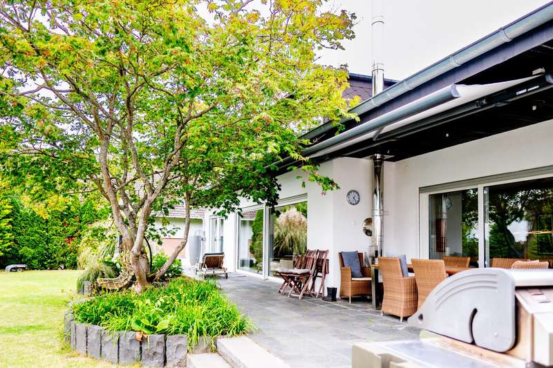 For sale is a modern renovated detached house on a plot of approx. 718 m². The property impresses with its very good and quiet location, which offers the perfect retreat for families. This property cleverly combines comfort with functionality and is ready to offer new residents a pleasant home. With its seven rooms, including four bedrooms, the house offers plenty of space for individual design and development. The light-flooded entrance area leads you into the spacious living and dining area. The embedded fireplace creates a cozy atmosphere on cooler days. Here you can comfortably wind down from everyday life. The area impresses with its large window fronts, which not only let in plenty of natural light, but also provide direct access to the covered terrace and garden. The view immediately falls on the heated outdoor pool, which is the centerpiece of the modern outdoor area. A covered terrace with awning and an outdoor shower complete the comfortable outdoor area. The tasteful planting and a practical garden shed round off the garden concept. In the basement, residents have access to a laundry room with integrated shower, a fitness room and a wellness area with sauna. These well thought-out additional rooms contribute to a high level of living comfort. Another highlight of this property is the garage with electric door, which offers enough space for a vehicle and is directly connected to the building. This feature underlines the high utility value and well thought-out planning of the house. This property cleverly combines comfort with functionality and is ready to offer new residents a pleasant home. The good infrastructure in the surrounding area ensures that all the necessary facilities for daily life are within easy reach. The quiet location ensures that sIe can enjoy peace and privacy while benefiting from the proximity to urban amenities. Arrange a viewing today to see the benefits of this property for yourself.