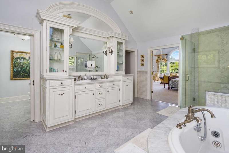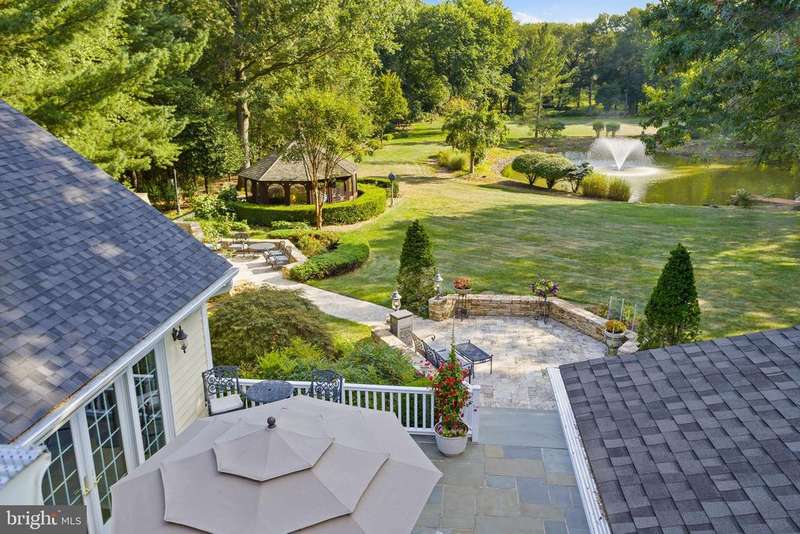 Beautifully reinvented in 2004,the private tree lined drive welcomes you to a wrap around porch, extensive patios, private pond with fountain and lovely gazebo. The spacious sunlit rooms feature custom mill work, built-ins and paneling designed to impress. The gourmet kitchen with a large island, great room, sun room, breakfast room and study offer spectacular views of this incredible one of a kind 5 acre estate. The upper levels boast 5 bedrooms including a dramatic primary suite with soaring ceilings and spa like bath, 4 additional spacious bedrooms, and bonus room on the 3rd level. The fully finished basement offers a cherry wood bar, game room and exercise room with spa bath including sauna. This home offers 8500SF of finished living space. Truly an oasis in the Blue Ribbon West Windsor-Plainsboro school district. By appointment only.