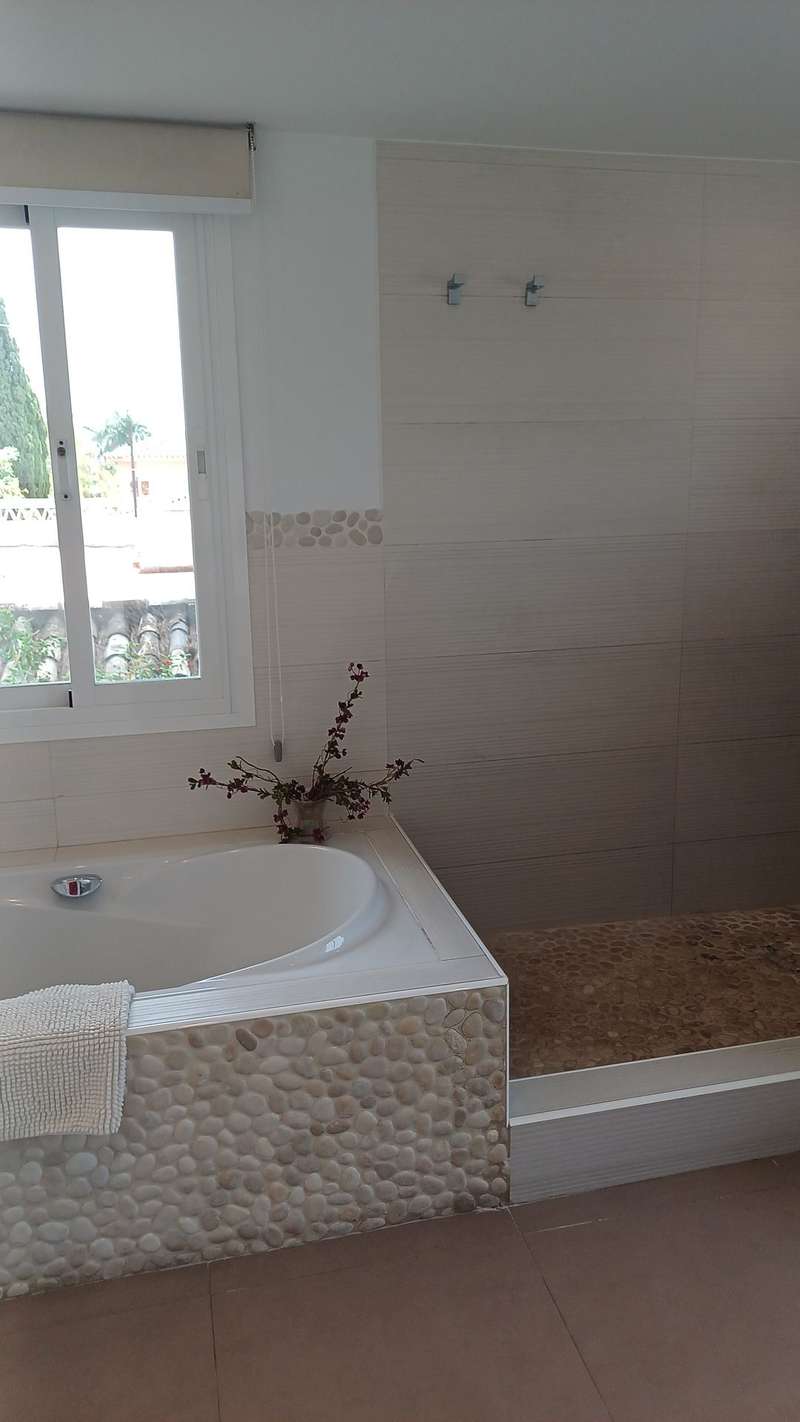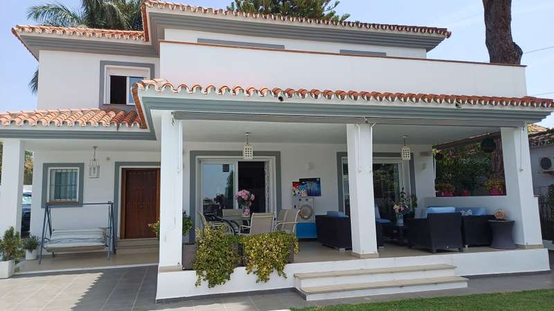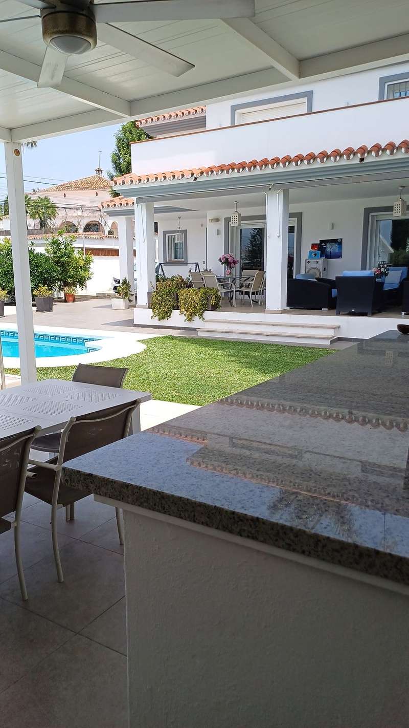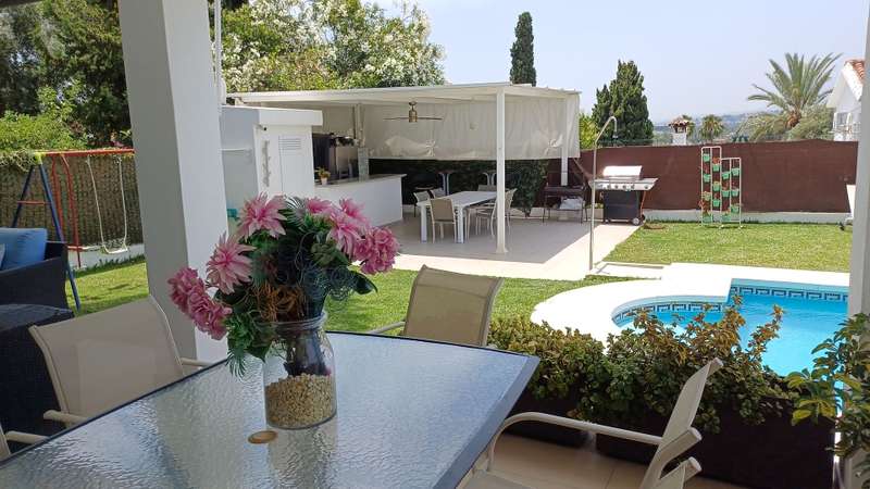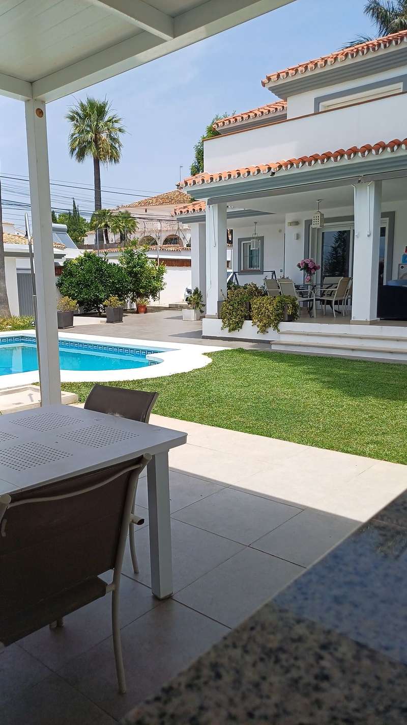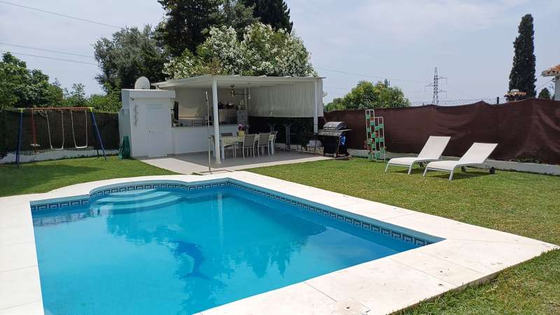 This magnificent detached villa is ideally situated in one of the most desirable areas of San Pedro de Alcántara, just minutes from the town center, the beach, the renowned Guadalmina Golf Course, and a wide range of amenities including international schools, shops, and restaurants. Set on a generous 675 m² plot, the property offers ample outdoor space with a beautifully maintained garden and a private swimming pool—perfect for relaxing, entertaining, or enjoying the year-round Mediterranean sunshine in complete privacy. The garden also features a covered pergola and a built-in BBQ area, ideal for outdoor dining and gatherings with family and friends. The villa is distributed over two levels and features five spacious bedrooms and three full bathrooms, making it ideal for families or those who value space and comfort. The bright and welcoming living room offers direct access to the garden and pool area, creating a seamless indoor-outdoor lifestyle. A fully equipped independent kitche
