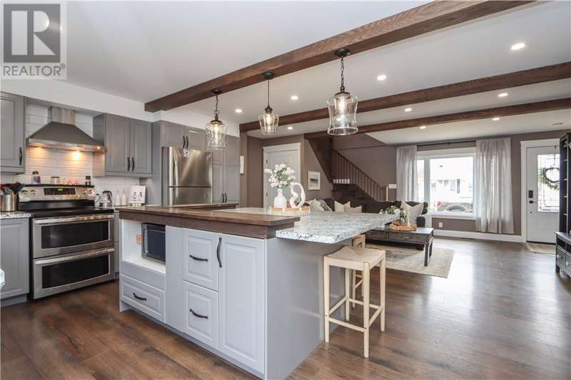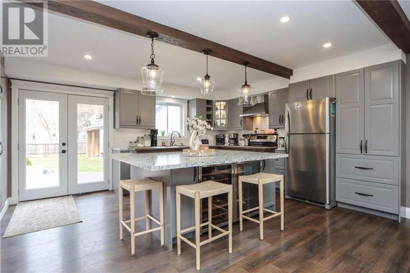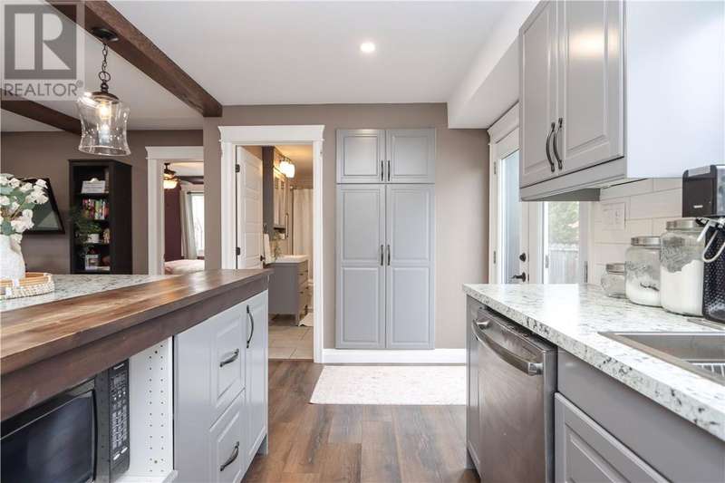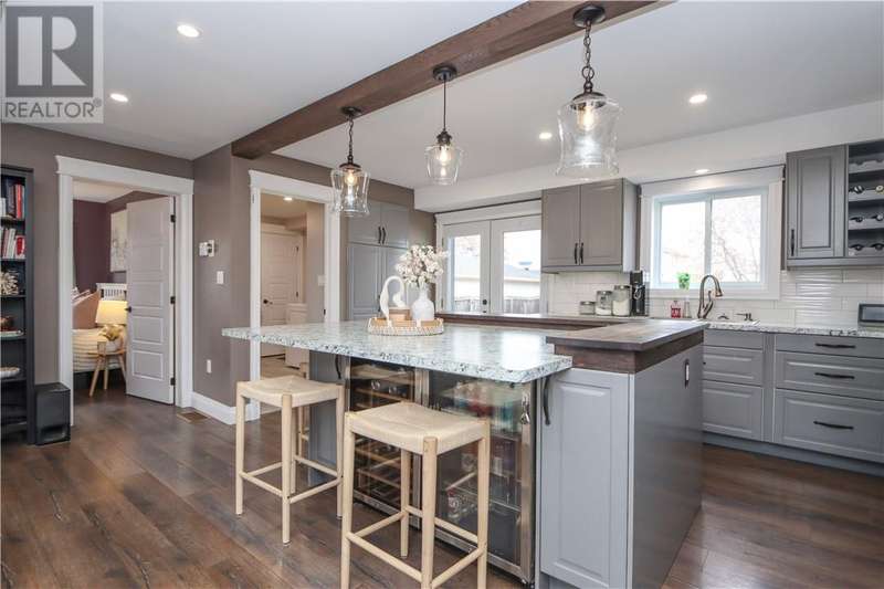 Welcome to 498 Adelaide Street in Espanola - a beautifully updated two-storey home where warmth and comfort meet thoughtful design. From the moment you step inside, you’ll feel the inviting energy of a space that’s been lovingly restored and styled for modern family living. The main floor offers a bright, open-concept layout that feels both spacious and cozy. The kitchen blends contemporary design with a warm, homey feel—featuring modern cabinetry in soft tones, a spacious island with a built-in beverage fridge and prep area, and plenty of room to gather for everyday meals or weekend entertaining. The adjoining living area is filled with natural light, creating an easy flow and a relaxed atmosphere. A main-floor bedroom and convenient bath/laundry combo add flexibility and function for family life or guests. Upstairs, the primary suite is a calm and comfortable retreat, complete with a generous walk-in closet and a spa-inspired ensuite featuring a glass shower and soaker tub. A second upper bedroom provides plenty of space for family or visitors. The finished lower level offers a cozy rec room—perfect for movie nights or play space—and a large storage area. Outside, the detached 28' × 16' garage includes a covered extension for extra storage or a workshop area. With its combination of modern updates, thoughtful finishes, and an unmistakably welcoming feel, this move-in ready home is the perfect blend of style, warmth, and everyday comfort. (id:7434)