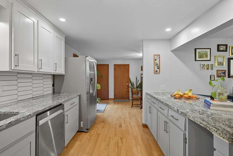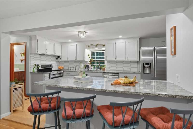 Lovingly maintained and thoughtfully updated, this South Amherst colonial offers charm and convenience. Located just minutes from Atkins Market, local restaurants, Amherst Golf Club, and a short drive to Amherst Center and Hadley s Rt 9 amenities. Enjoy a fenced-in backyard with fire pit and garden area, plus a 2-car garage. Inside, a remodeled kitchen features granite counters, newer stainless appliances, and a large peninsula with breakfast bar, opening to the dining room. Refinished hardwoods flow through the first floor, complemented by tile in the bathroom. The spacious living room with fireplace is perfect for gatherings. Upstairs you ll find a full bathroom, three bedrooms, all with hardwood including a generously sized primary suite with double closets. An efficient Buderus heating system with a new (2024) water heater completes this perfect package.