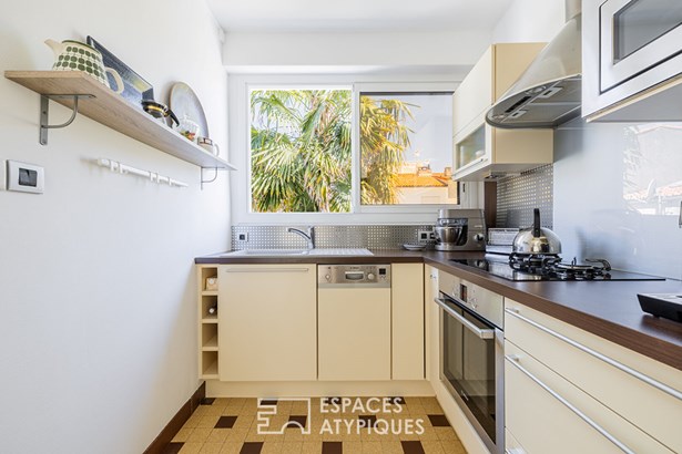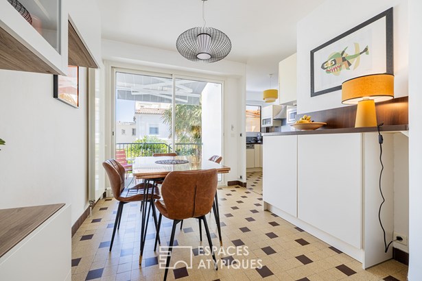 Designed by the renowned Louis Simon, it offers approximately 80 sqm of living space. Its unique architecture and carefully preserved original features make it an atypical property, both full of character and bathed in natural light. A sunny terrace extends the living spaces and overlooks a garden planted with Mediterranean trees.