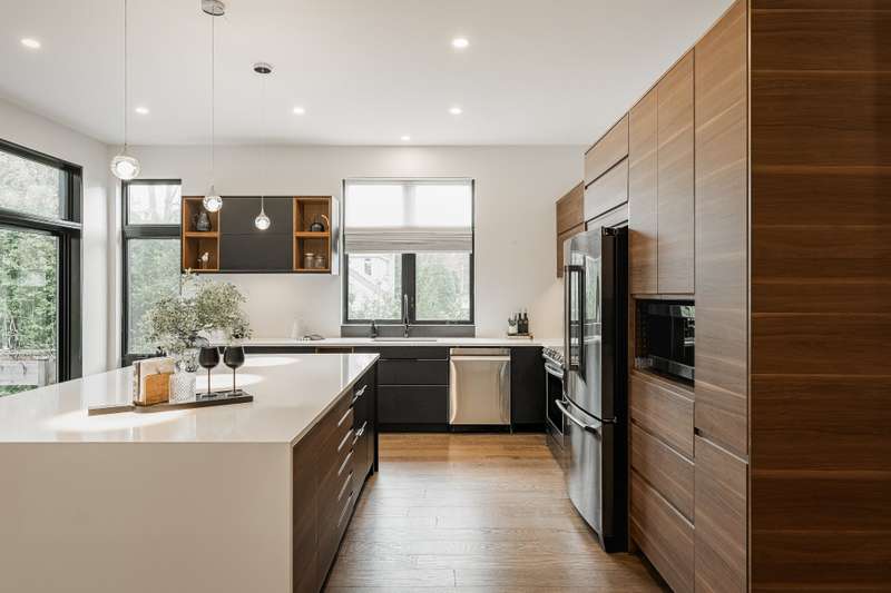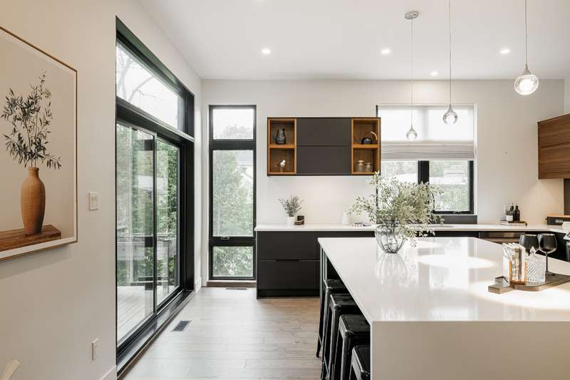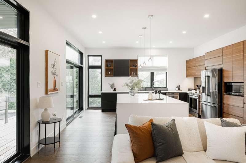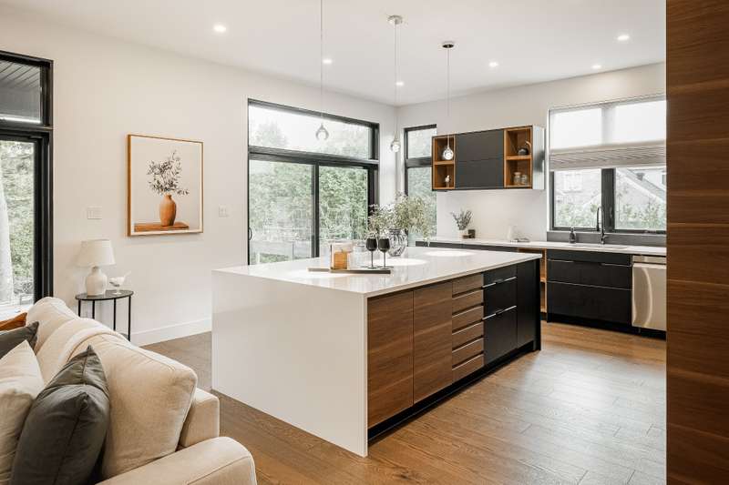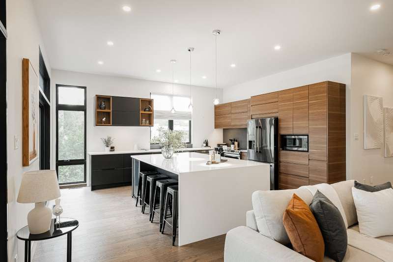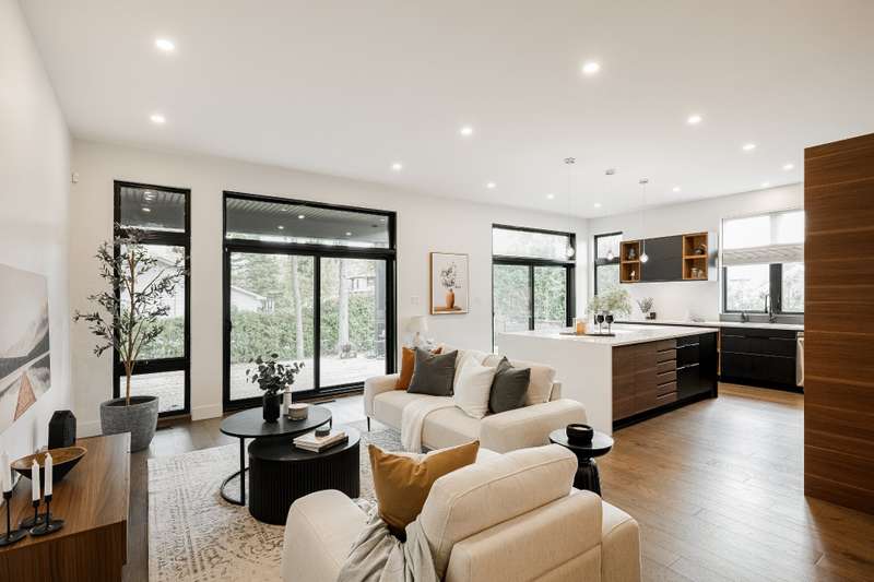 Modern, thoughtfully designed 5+2 bedroom home with high-end finishes and quality craftsmanship. This residence offers a luxurious lifestyle in a prime location near parks, the future REM station, and scenic lakeside paths. Step inside to 9-12 ft ceilings, elegant hardwood floors, a floating staircase, and floor-to-ceiling windows that fill the space with natural light. The gourmet kitchen is perfect for culinary enthusiasts, while the primary suite features a private terrace, spa-like ensuite, and spacious walk-in closet.