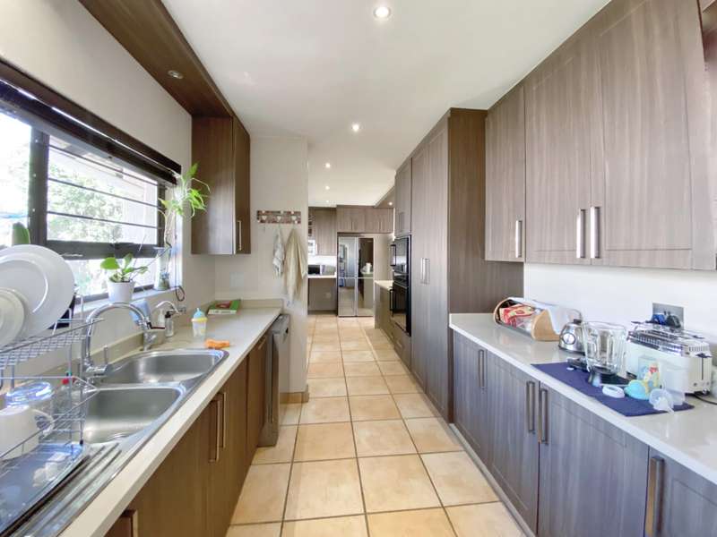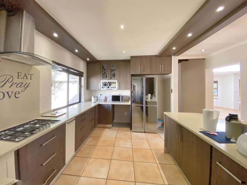 The 4 bedrooms offer natural lighting and are serviced by 3 bathrooms. The main bedroom also features a closed-combustion fireplace ideal to keep cosy during those Winter evenings. The surrounding garden further enhances the entertainment features of this home with an enclosed covered patio with built-in braai and overlooking the sparkling pool. With an easy floor design to compliment a family?ÇÖs lifestyle and design needs, this home is calling for the growing family.