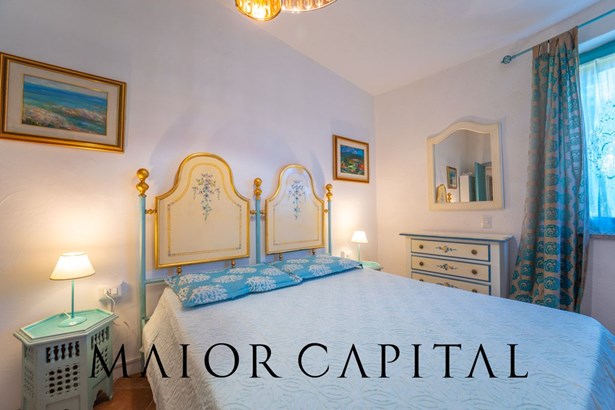 The villa stands on a plot of approximately 500 sqm, surrounded by a large private garden that guarantees privacy and tranquillity. The sun deck with sea views is a real added bonus: a private, panoramic space where you can sunbathe, read a book or simply enjoy the horizon that stretches between the blue of the sky and the sea. The spacious outdoor area also includes a barbecue area, perfect for entertaining.