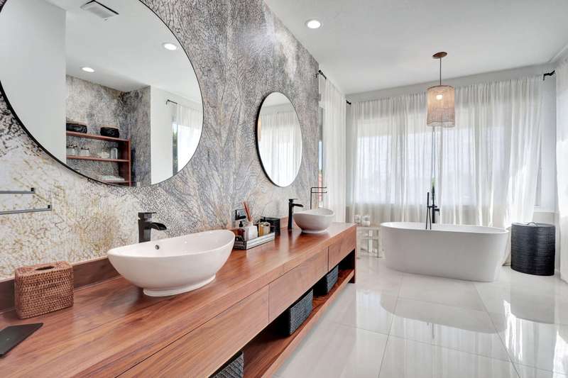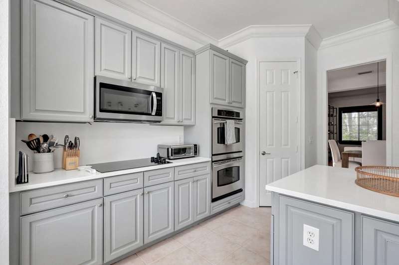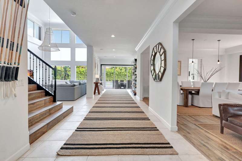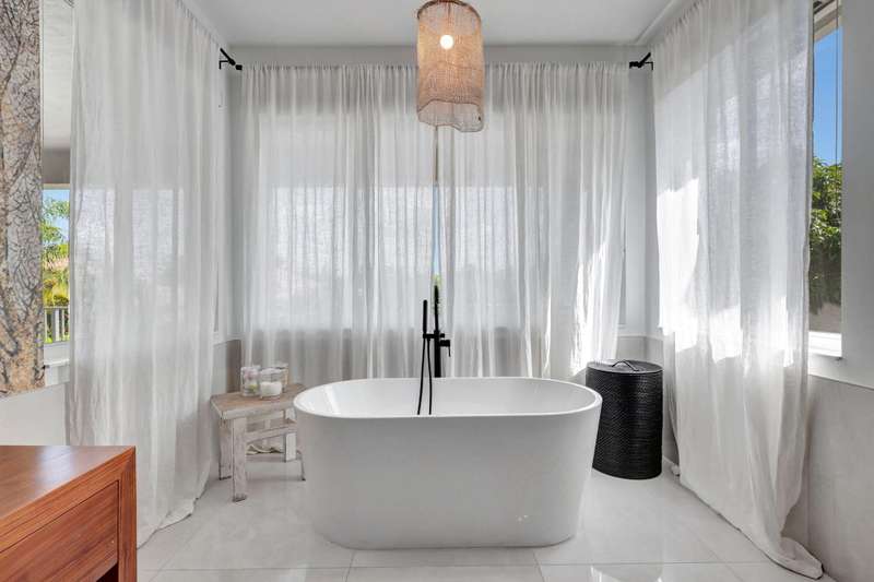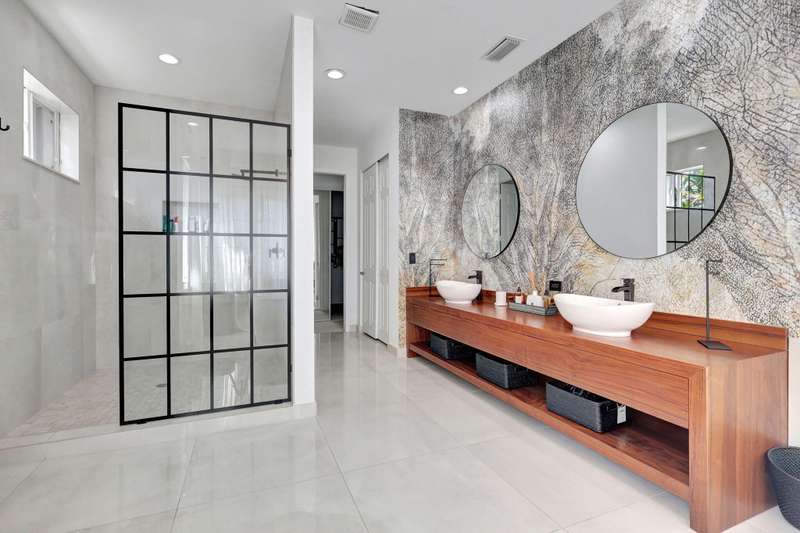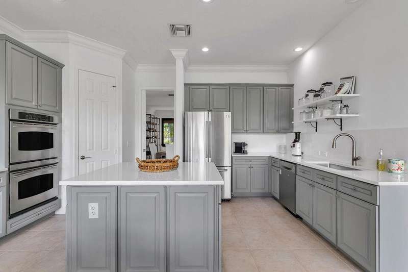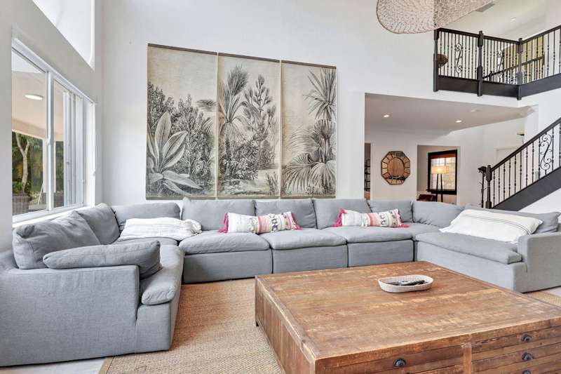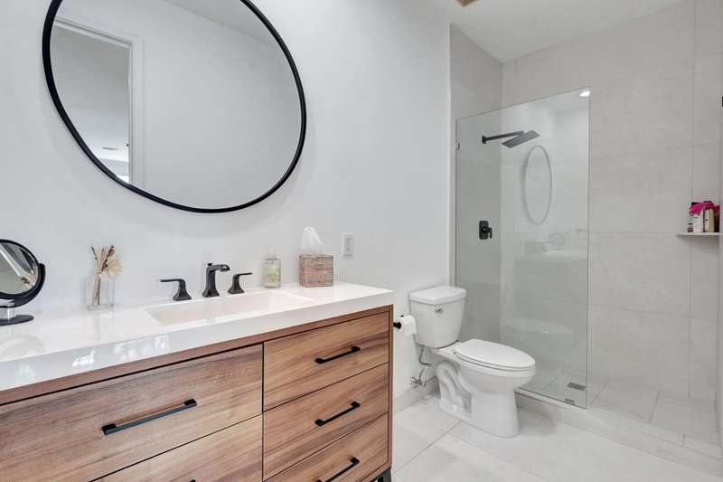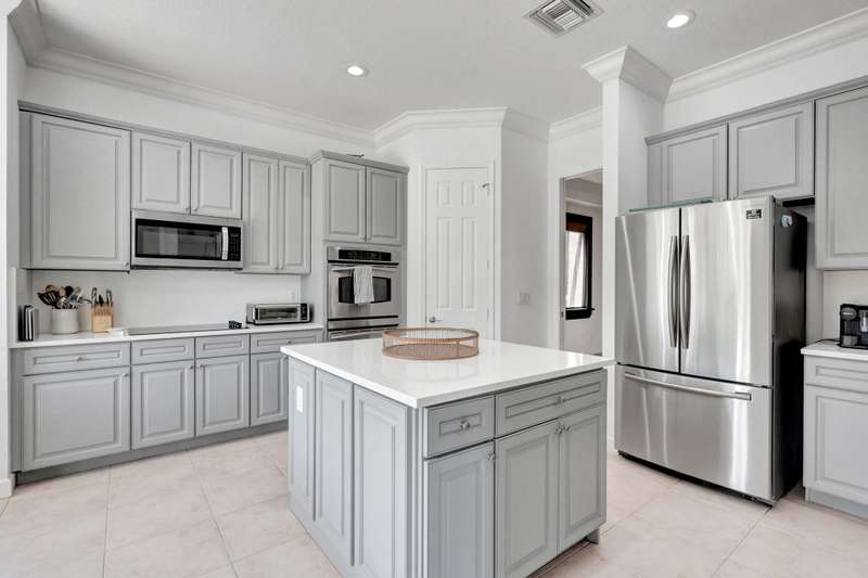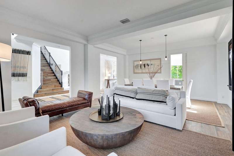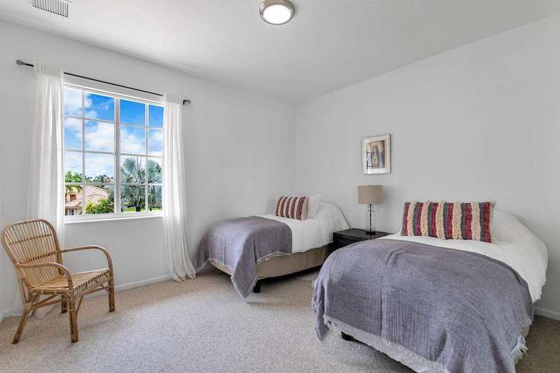 This stately home, beautifully decorated with top-of-the-line RH furniture, boasts tasteful colors and decor throughout. The first floor features a full bedroom and bath, while upstairs offers generously sized bedrooms, including a large main bedroom with a walk-in closet, ensuite bath, and private balcony.and displaying a wardrobe in a way that's both functional and stylish. Adjacent to the main bedroom is a spa-inspired bathroom that rivals those in the most luxurious resorts. The bath is equipped with dual vanities, , a separate rain shower, and elegant tile work, all contributing to a sense of ultimate relaxation and comfort. Enjoy privacy with a large fenced backyard at the end of a cul-de-sac. Located in a 24-hour man-gated community, it's close to major highways,