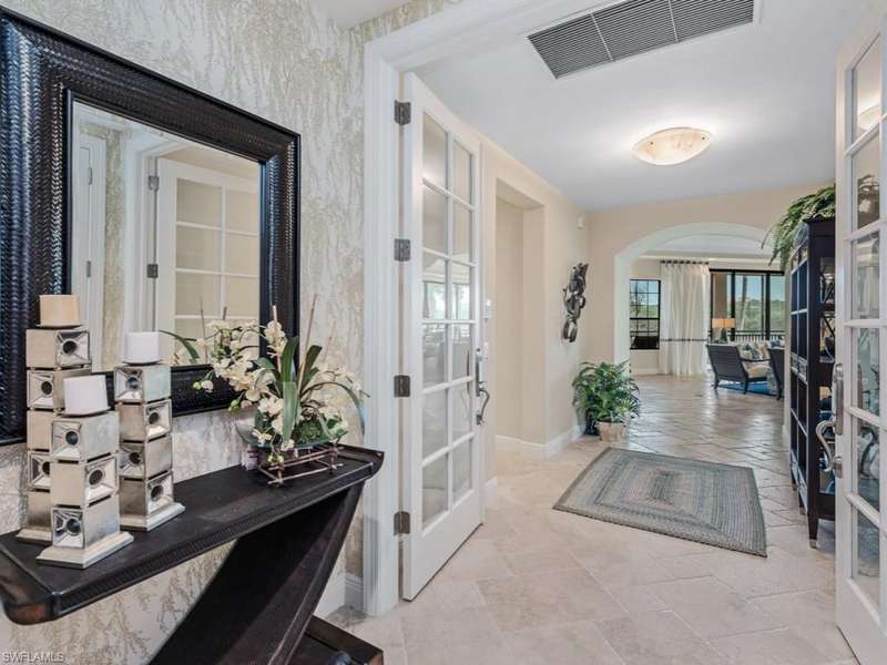 EXPERIENCE EXCEPTIONAL PRIVATE RETREAT AND SERENE LIVING IN MARQUESA ROYALE AT TIBURON. A prime location on Greg Norman legendary 36-hole championship course, nestled adjacent to The Ritz-Carlton Golf Resort Naples. This refined residence elegantly designed throughout by Jinx McDonald, Designs, Inc. offers breathtaking sweeping views of shimmering wetlands, lush greens of the 9th, 13th, and 18th holes on the prestigious Tiburon Gold Course, certified as an Audubon Cooperative Sanctuary, as well as a pool and spa oasis just outside your door. This thoughtfully designed space, with its open great room, private owners suite and office, two additional guest bedrooms, 3.5 bathrooms and its expansive loggias, blends seamlessly indoor-outdoor like a single-family home would, but with the convenience of condominium living. A chef's kitchen is outfitted with Viking appliances, a butler's pantry and a wine chiller fridge. Additional amenities include two-covered parking spaces and ample pri