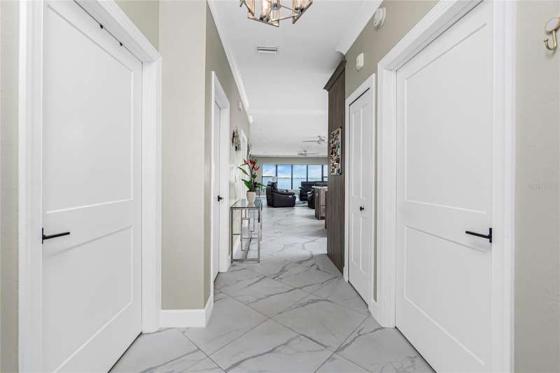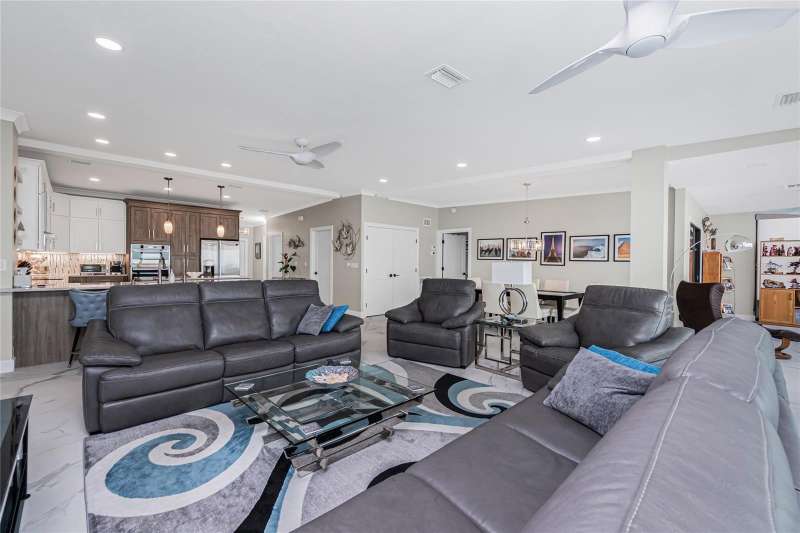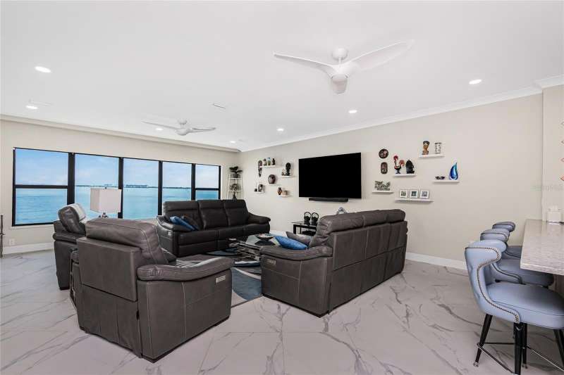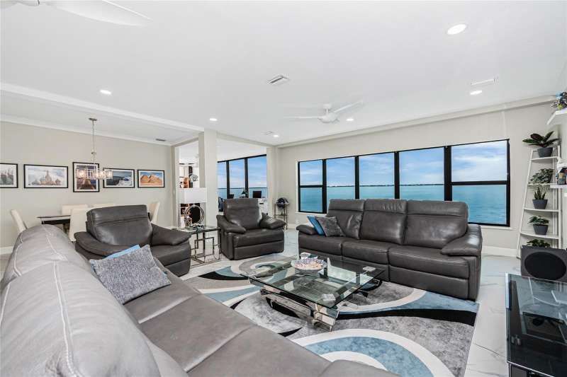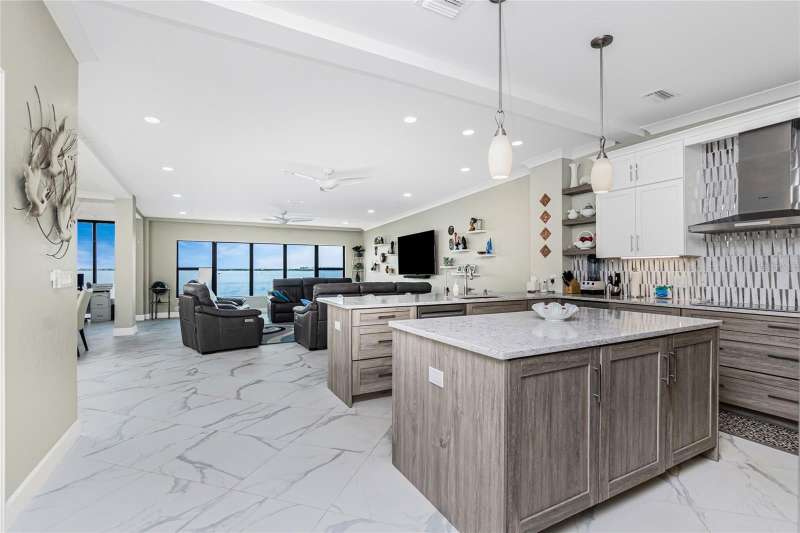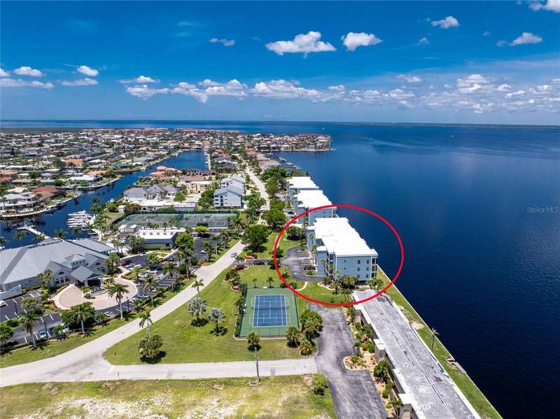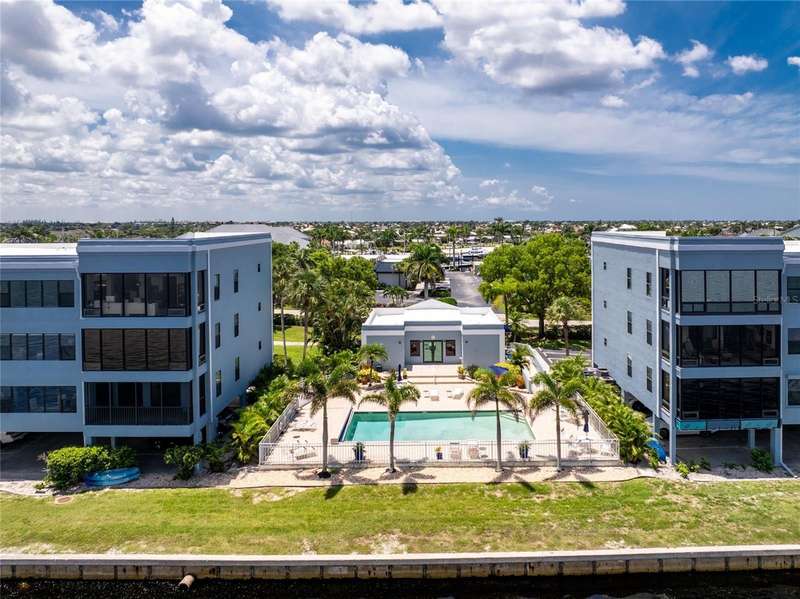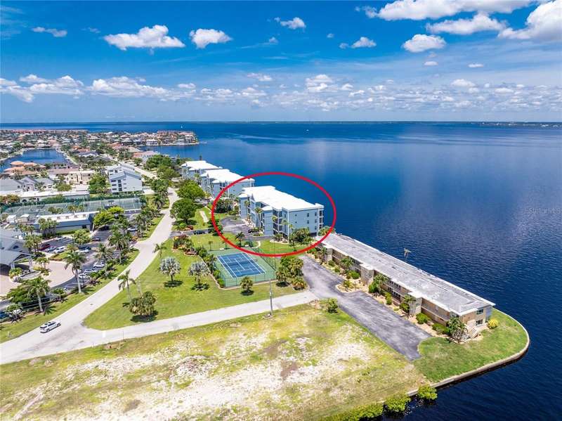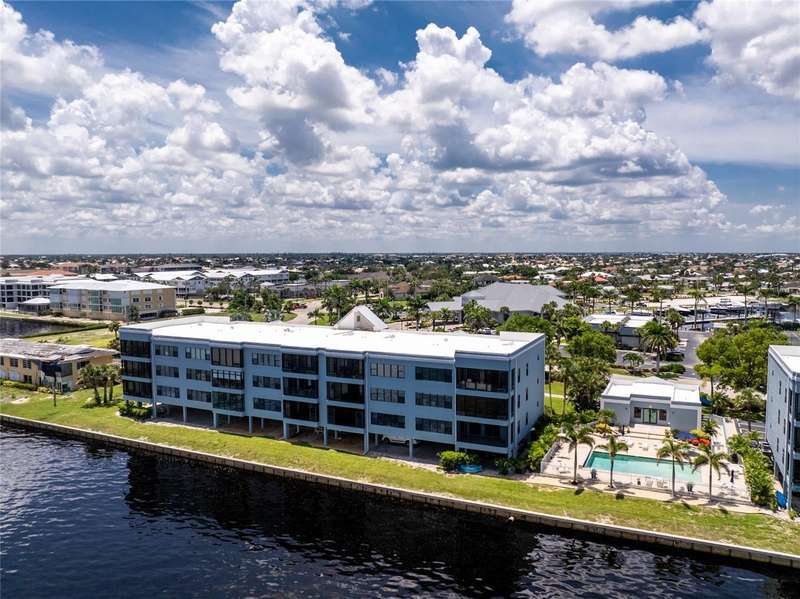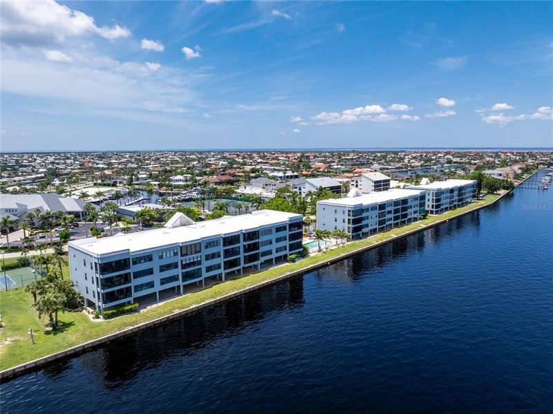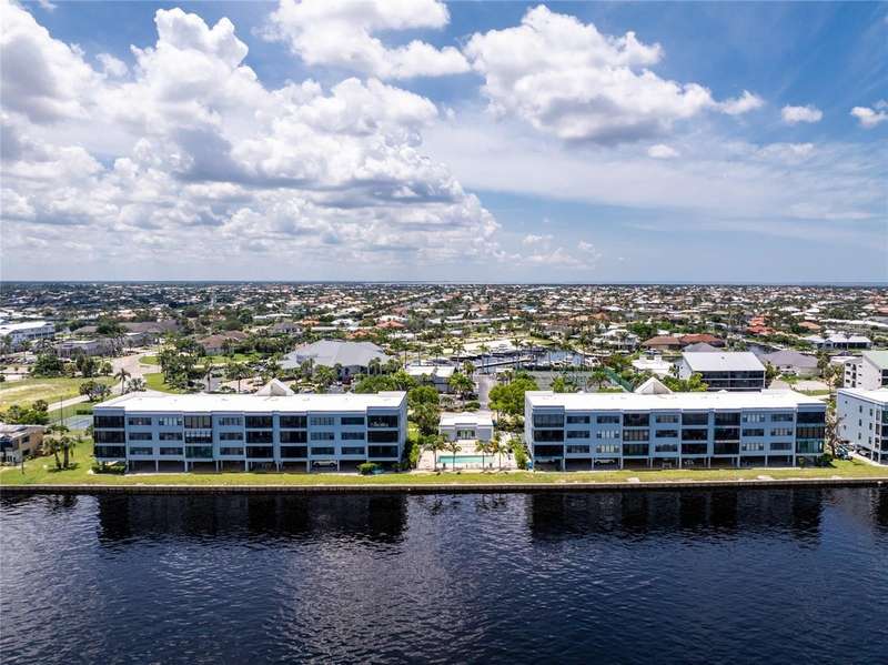 A back wall that will allow you to enjoy a breathtaking view of the harbor is just one stunning detail this home has to offer. This completely renovated, from wall to wall, 3/2 END UNIT condo, offers a third floor (top) view, with space to entertain, relax, and enjoy some of the most desired living that Punta Gorda Isles has to offer. Open your door to be welcomed by modern style living including high ceilings and a kitchen that has been beautifully designed to keep you engaged in all that is going on around you. These beautiful counter tops offer ample, usable space, with cabinets that provide an abundance of storage. The primary bedroom is set apart from the other two rooms and is situated within that bird's eye view of the water. Both bathrooms offer updated spacious areas with modern showers, vanities, and LED recessed lights. The 2nd and 3rd bedrooms are located on the opposite end of the home, given privacy where needed. The extended space off the living room provides room for an office or just an area under air where you can take advantage of the view. Have comfort knowing that the AC placed 2018 also comes with a surge protector. The hot water heater was just replaced July 2025, and the entire home is equipped with a whole home dehumidifier. A reverse osmosis water dispenser, a new electric panel with new wiring for kitchen and laundry room, and PEX plumbing supply lines with extra shut off control just adds to all the extras that this home has to offer. With ownership you can enjoy assigned under building parking for one car, plenty of extra building front parking spots, pool, tennis court, clubhouse, and your own storage unit. The elevator offers service to your top floor so walking stairs can be a choice, not a concern. Conveniently located near downtown Punta Gorda, Fisherman's Village, and I-75, this home belongs on your must see list. Schedule today and start enjoying your slice of paradise.