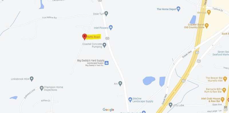 Price Improvement - 32 +/- acres (Survey needed to determine exact acreage). This listing includes 3 parcels (Parcels 3,4,5) that we are selling as one property. It is located in Murrells Inlet and one of the few remaining large tracks. The zoning is R40 which is 40,000 SF lots and it is being sold as this zoning. It would be great for large estate lots or a couple of homesites. It is located on Betts Road which ends before it gets to the property. There are a total of 5 - 10 acre parcels at the end of Betts Road and we are working on pricing for the road. It is a county road but owners of parcels 1,2,3,4,5 will have to pay for the cost of extending the road. Beautiful Live oak trees with Spanish moss and privacy all around. It is truly a little slice of paradise with the water and beach down the road. As well as the Marshwalk in Murrells Inlet for all of the live music and great food.