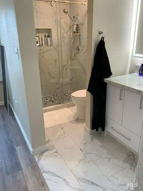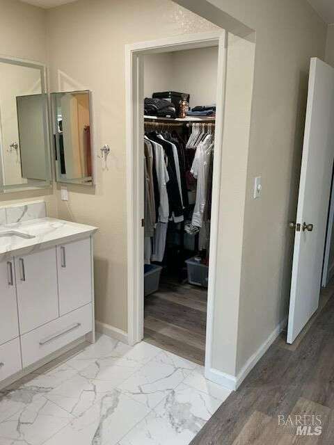 Welcome to 1411 Klamath Drive, located in the Quail Glen subdivision of Suisun City. This beautifully maintained, move-in-ready home boasts 3 bedrooms, 2.5 updated bathrooms, a generous loft, and a large family room, offering 2,312 sq. ft. of living space on a 7,405 sq. ft. lot. The home features vaulted ceilings, a stone fireplace, double-pane windows and classic wood shutters throughout. The kitchen has ample cabinetry and sleek quartz countertops. Additional features include recessed lighting, brand-new flooring, fresh interior and exterior paint, and a spacious attached two-car garage and a dedicated laundry room. The owner's suite offers quartz vanity, an LED mirror, a walk-in shower, and generous closet space. Two additional bedrooms, a bathroom with a tub/shower combo, and a versatile den. Step outside to a meticulously landscaped backyard perfect for entertaining or gardening. The manicured front yard, wide driveway, and potential RV or boat parking in the spacious side yard further enhance the home's curb appeal. Security features include iron gates on both sides one with a combination lock and the other with a security lock. This is a first-time offering on the market, making it a truly rare opportunity and one you won't want to miss.