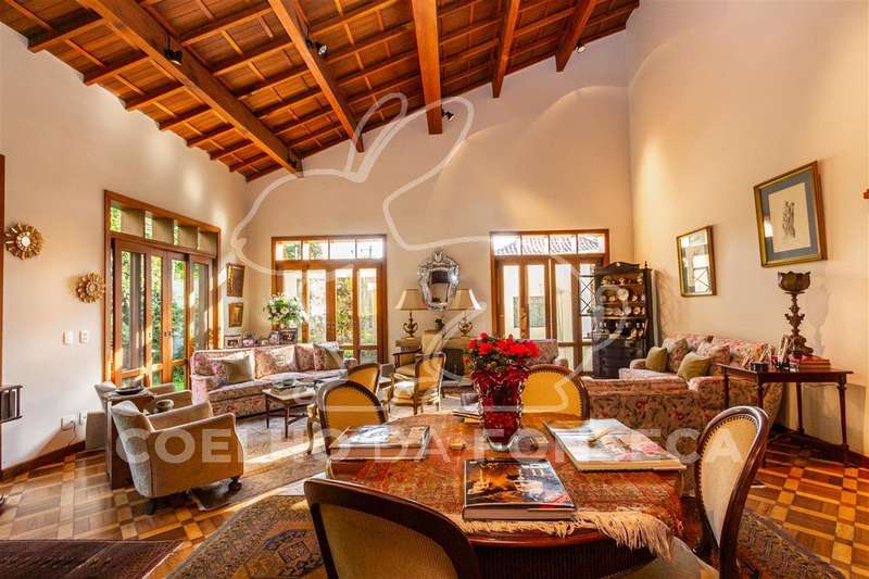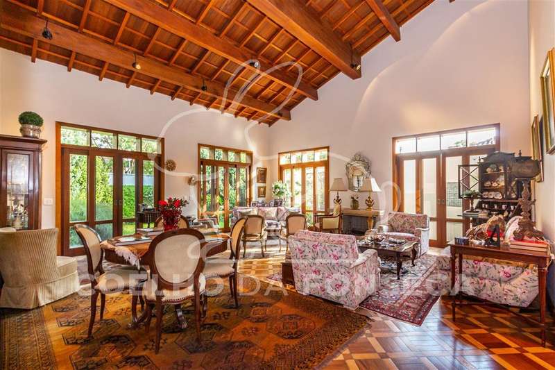 Sala de estar ampla, sala de jantar, copa/cozinha, três dormitórios, sendo três suítes, vagas para vários autos, piscina, edícula com dormitórios e banheiro de empregada e amplo jardim.\r\r\r\r\r\r\r\r\r\r\r\r