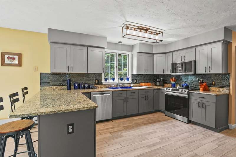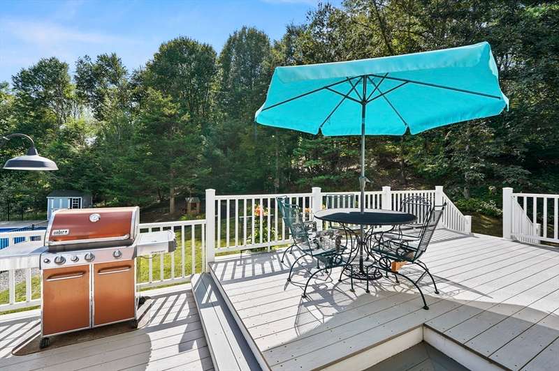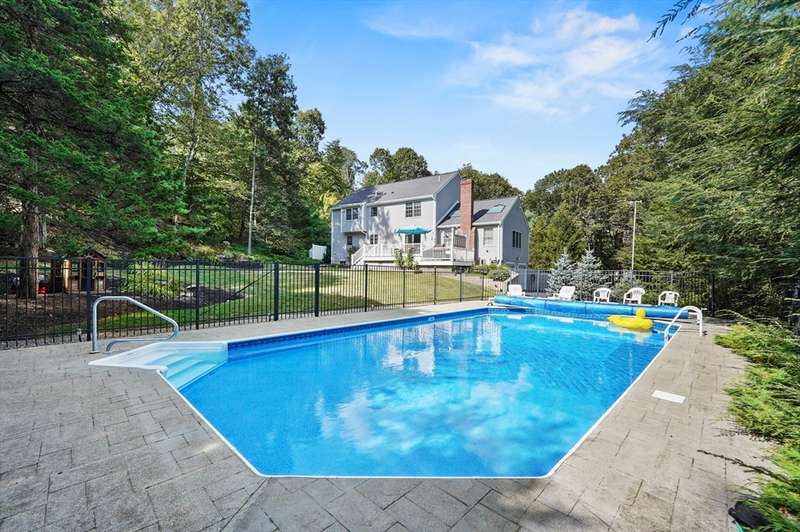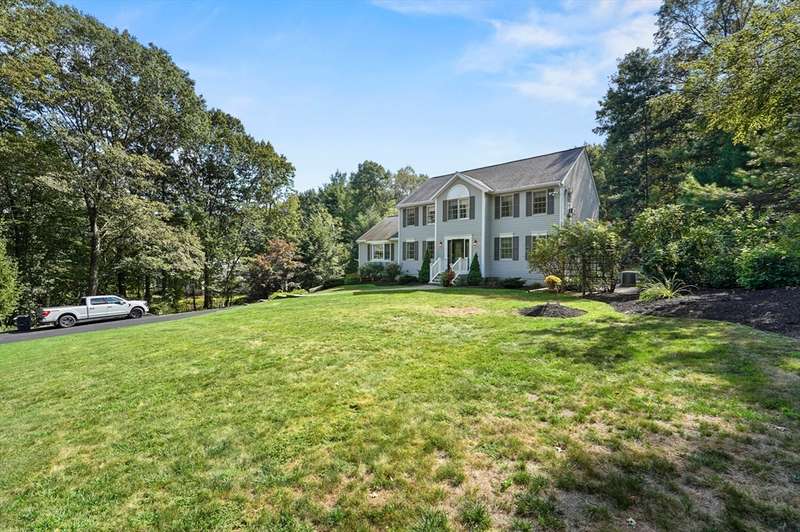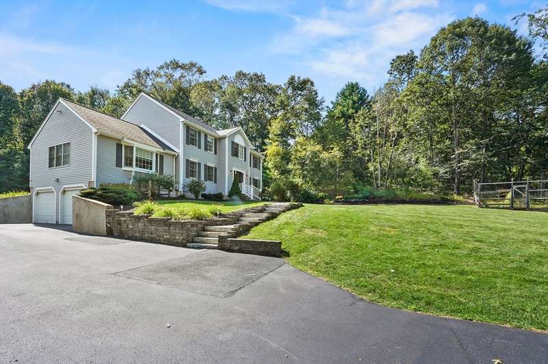 Welcome to this beautifully updated 4-bed, 2.5-bath Colonial situated on 1.85 acres in desirable Northborough! Thoughtful upgrades blend style, comfort & function throughout. Enjoy a bright, open layout featuring a stunning living room with vaulted ceilings, skylights & fireplace—accessed via French doors off the kitchen. The kitchen offers granite counters, SS appliances, a breakfast bar & eat-in area, while the formal dining room is perfect for gatherings. A home office with built-ins throughout, laundry & half bath complete the main level. Upstairs you'll find 4 bedrooms, including a vaulted-ceiling primary suite with walk-in closet & a spa-like bath with soaking tub & shower. A second full bath serves the remaining bedrooms. Additional highlights of the home include a 2-car garage, back deck & private in-ground pool. This home truly checks all the boxes! With close proximity to several local farms, you will feel as though you have your own REMOTE & SECLUDED farm retreat right here!