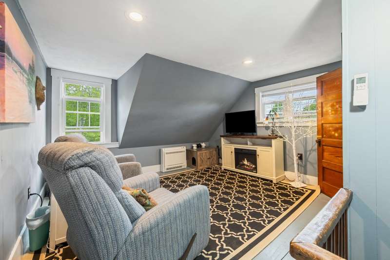 This beautifully updated 3-4 bedroom, 2-bath home offers the perfect blend of historic charm and modern efficiency. Nestled on 32.01 acres of peaceful countryside, it features wide pine board floors, a cozy wood stove in the living room, and exposed beams that highlight the home's rustic elegance. Bright skylights and large windows flood the interior with natural light, while built-in heat pumps ensure year-round comfort. Recent upgrades include a foam-insulated basement, new siding, windows, and updated insulation, all contributing to improved energy efficiency. The spacious layout offers ample room for family and guests, and the 2-car garage—currently used as a horse barn—can easily be converted back to its original use. For equestrian enthusiasts, a pasture field is ready for your animals. Step outside to enjoy a private swimming pond, beautifully maintained flower gardens, and open skies perfect for sunsets and stargazing. The property is a haven for wildlife, including deer, herons, and an abundance of songbirds and bluebirds, creating a truly tranquil setting. A solar-heated saltwater pool is negotiable, offering additional outdoor enjoyment. This property features a 3-bedroom septic design, offering future flexibility. Ideally located just minutes from Bangor, Belfast, Ellsworth, and the coast, this home delivers the perfect balance of privacy, nature, and convenience. Pool is negotiable. Sauna does not convey.