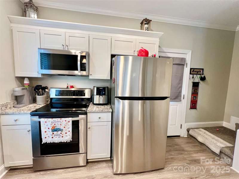 Ready to move in--3br/1.5 bath convenient to everything. This property has a welcoming front covered patio/porch area with an extended driveway to accommodate more vehicles. Inside you will find an open floor plan with a neutral color scheme. Kitchen features granite counter tops, stainless steel appliances, breakfast bar and storage closet. You can access the large back patio thru the kitchen and there is also a utility building that will stay. Upstairs is the primary bedroom that has a Jack and Jill shower/toilet, but separate vanities. There are 2 additional bedrooms on this level and a laundry closet.