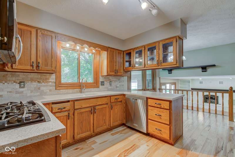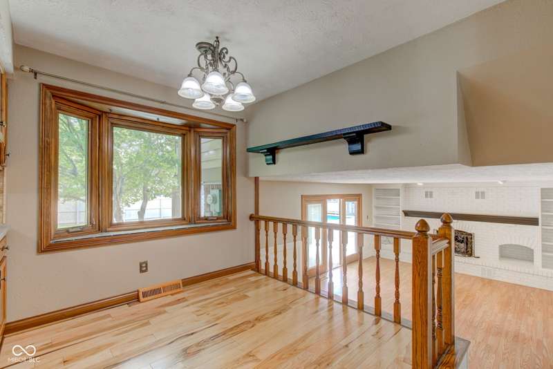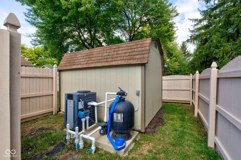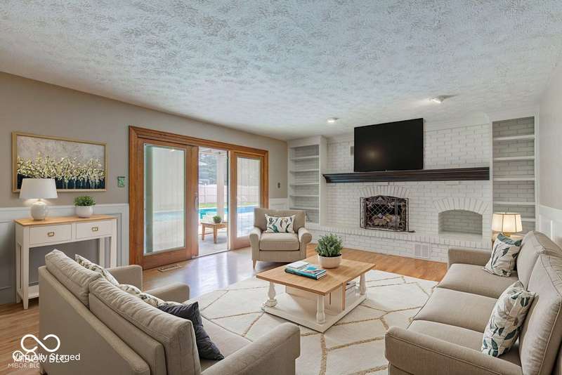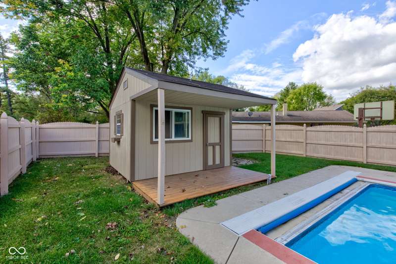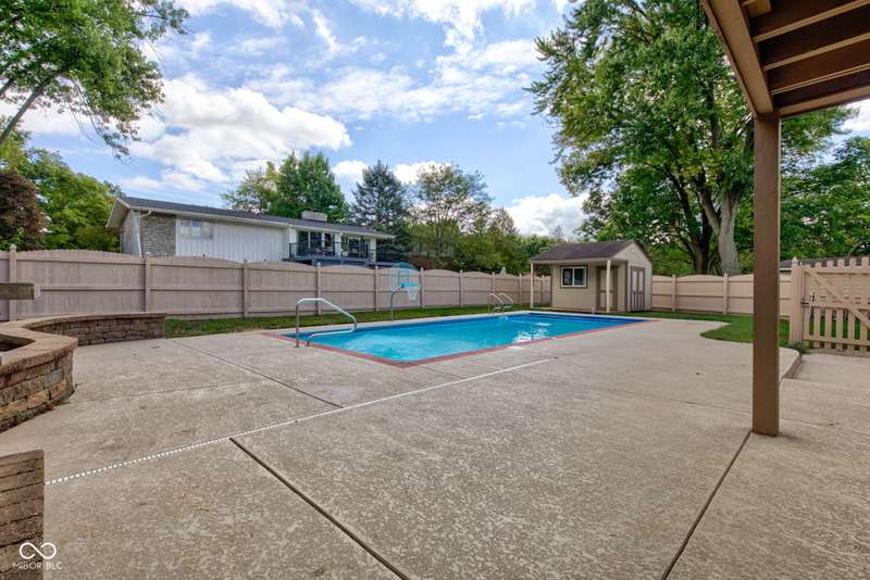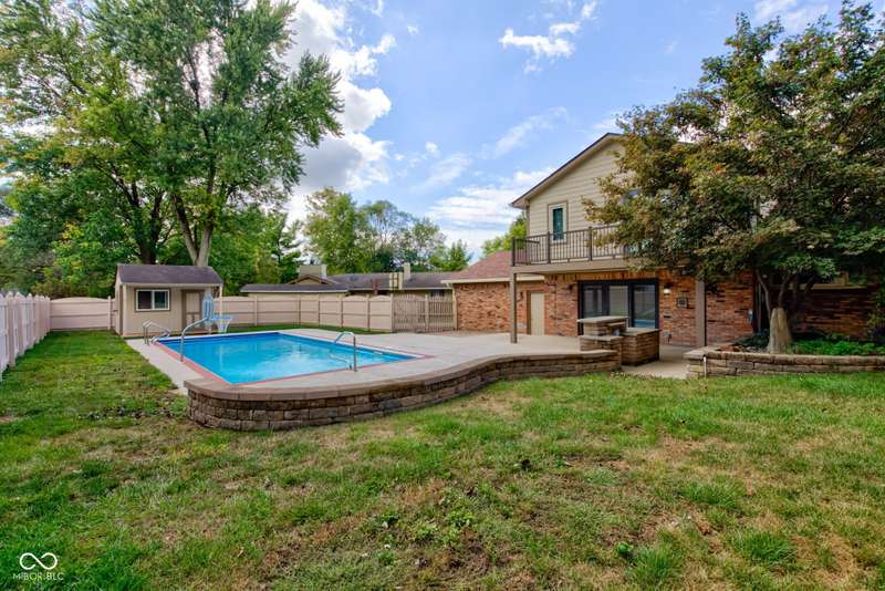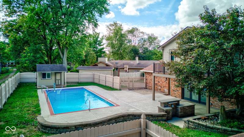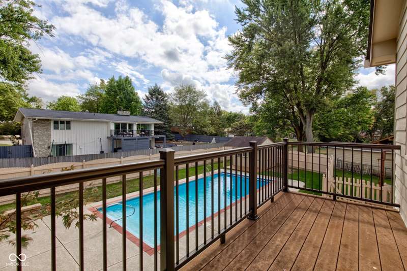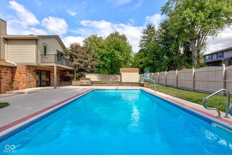 A MUST-SEE! This home is situated on a cul-de-sac in the sought-after Meridian Woods Park. The main floor features spacious living areas with beautiful hardwood floors and large windows. The kitchen boasts a gas cooktop, double ovens, and updated countertops. Cozy up by the fireplace in the great room during cool evenings. Don't overlook the custom tiled bathroom, conveniently located near the main floor bedroom. Upstairs, the luxurious master suite includes a walk-in closet, private bathroom, and a balcony overlooking the backyard. There are also two additional bedrooms and a full bathroom on the upper level. The backyard is a standout feature, with an in-ground pool and a spacious patio for hosting BBQs. The home has been well maintained, with updates including interior woodwork, doors, furnace, AC, and water heater in 2017, water softener in 2015, Pool Pump & Salt Cell in 2022, and brand new carpet in 2024. The neighborhood offers clubhouse access, a pool with a youth swim team, and walking trails. It's a serene retreat with easy access to all that Indy has to offer. Schedule your showing today.