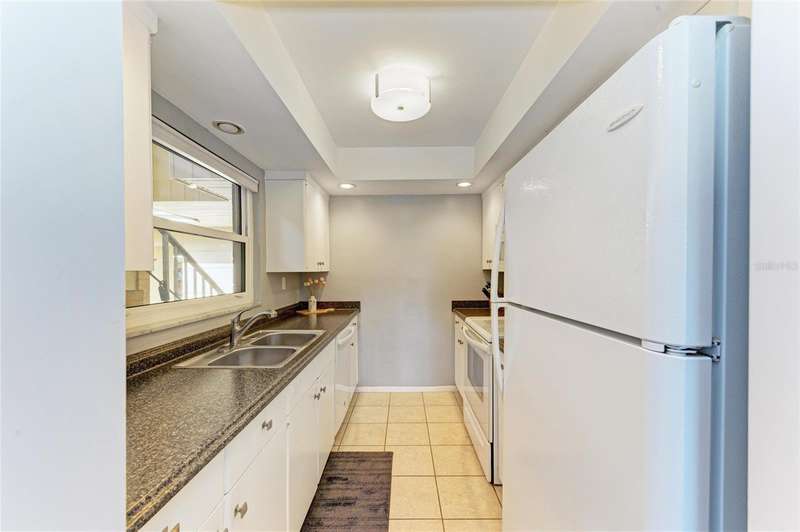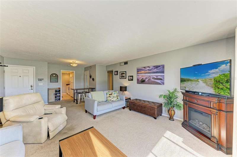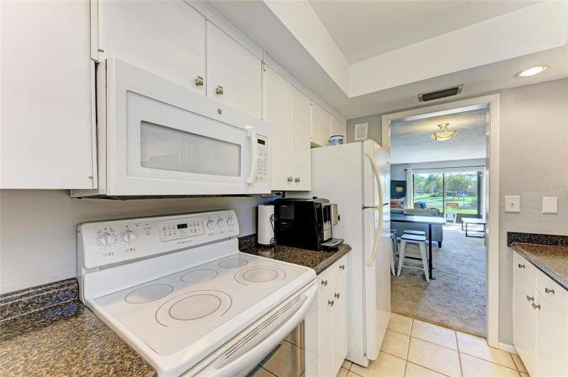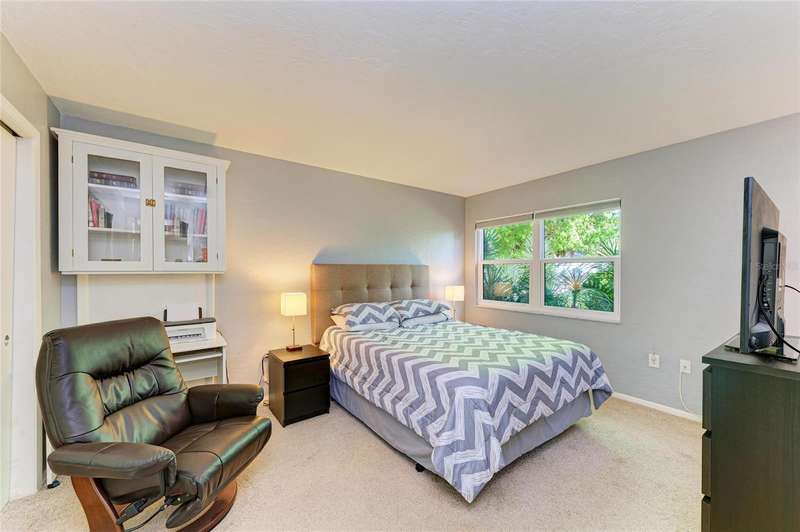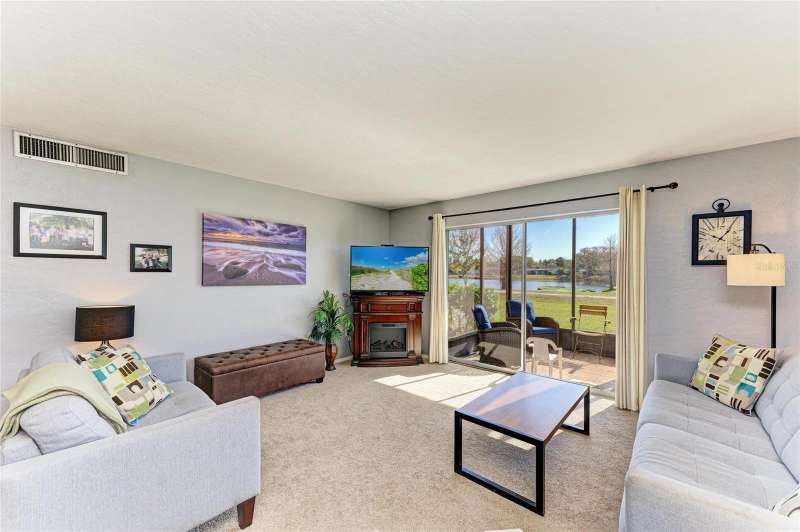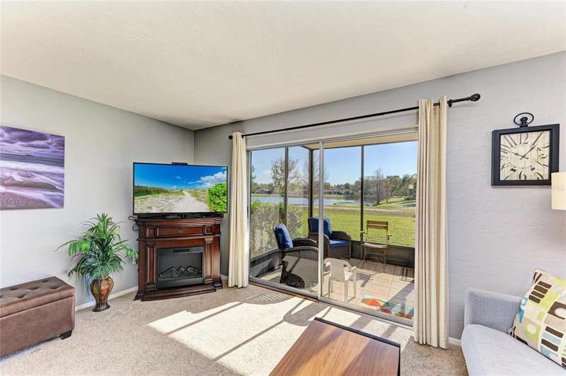 IMPACT GLASS WINDOWS AND FIRST FLOOR!! LOCATION, LOCATION, LOCATION WITH LOW CONDO FEES $450/MONTHLY! Only 7.5 miles to world famous Siesta Key Beach. Ground level 2/2/1 condo with spectacular pond view, screened lanai and outdoor access. Entry opens to foyer with beautiful living room and dining area combo. Large living room has beautiful view of pond and golf course with sliding glass doors to screened lanai. Dining room has pantry/closet. Kitchen has appliances with window above sink. Hallway has full size stackable washer/dryer. Tranquil primary bedroom with garden view, built-in desk and closet. Primary bathroom with shower, new vanity and lights. Guest 2nd Bedroom with built-in closet. Guest bathroom with tub/shower and updated vanity. AIR CONDITIONER REPLACED IN 2021. NEWER screen enclosure, entrance door, dishwasher, microwave and sink faucet. Close to shopping, dining, arts/culture, theme parks, major sporting events, Pinecraft Park, Legacy Trail and more! This is a must see! Come enjoy the Florida lifestyle.