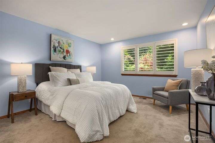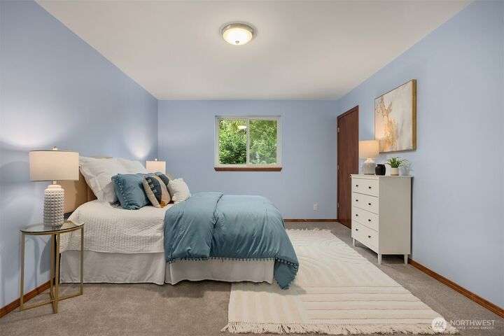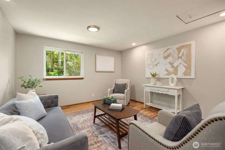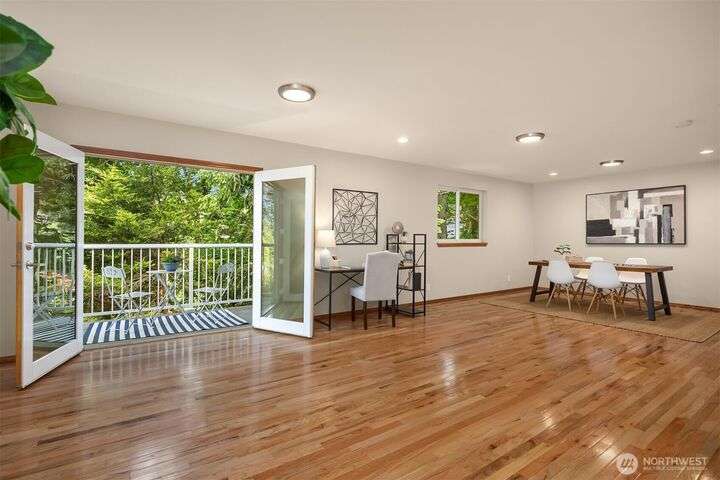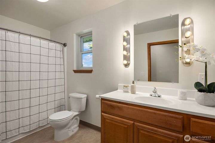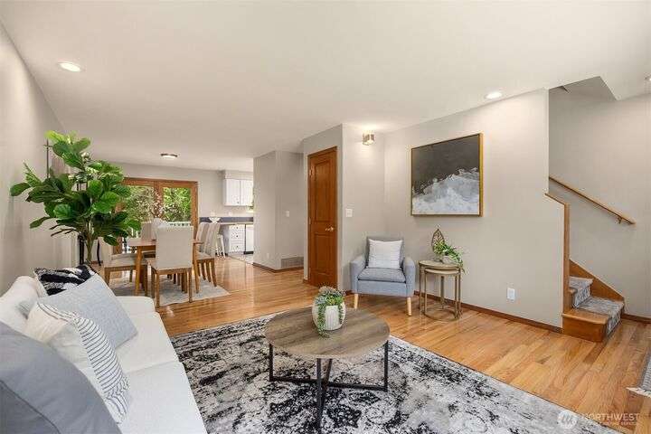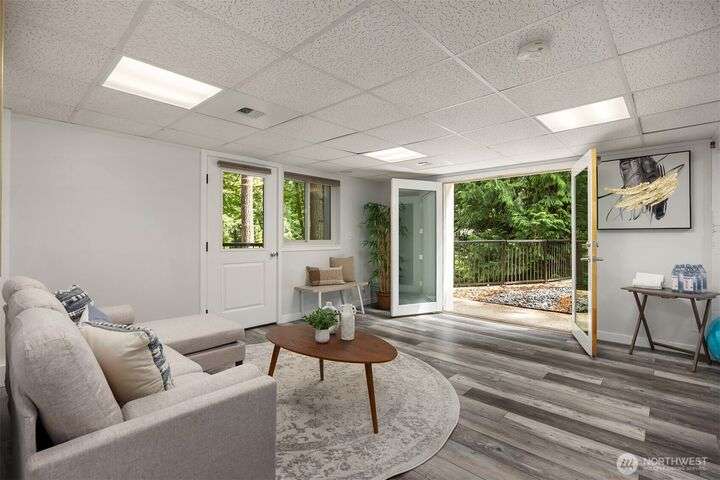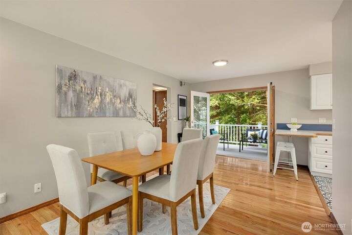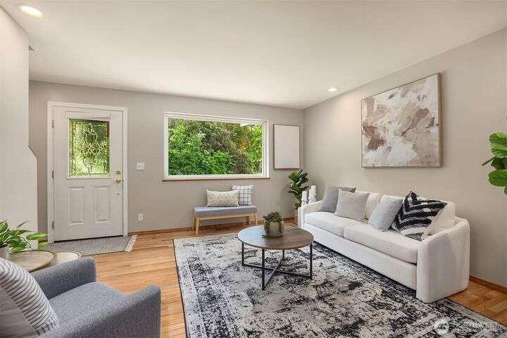 This lovely home located in the Pioneer Hill West Community offers living space for all. Enjoy sunlight throughout the day and your own personal backyard forest. This graciously sized home features a convenient main floor primary, 2 large bedrooms upstairs with a huge bonus space that can be used for a media room, playroom, office or workout space with a cute balcony featuring partial views of the Olympic mountains and your private backyard forest. The fully finished, daylight basement features french doors leading out to a fully fenced side yard, a full bathroom and loads of storage. Easy access to all the PNW activities and a short distance to Poulsbo. Dues include unlimited water and a community park located across the street!