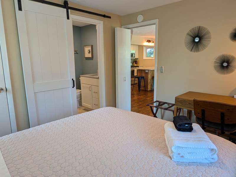 DON'T LET THE SMALL SIZE FOOL YOU!!! This 2 bedroom, 2 bath cottage feels SO much bigger. Bedrooms are separated for maximum privacy, It has an updated kitchen, original hardwood floors, gas fireplace and screened-in porch. The oversized one-car garage is a bonus but can also be converted into flexible living space. The back yard is HUGE and FULLY fenced in. Currently being used as a popular rental property ($74K in 2023 & $76K in 2024) but would make an excellent primary or secondary home with plenty of space for future additions. Walking distance to downtown Douglas - and an easy bike or short drive to Saugatuck. Reinforced the deck, added hot tub, installed new flooring in bedroom, new shower/tub, and new HVAC/AC since last purchase. Furnishings sold with the house.