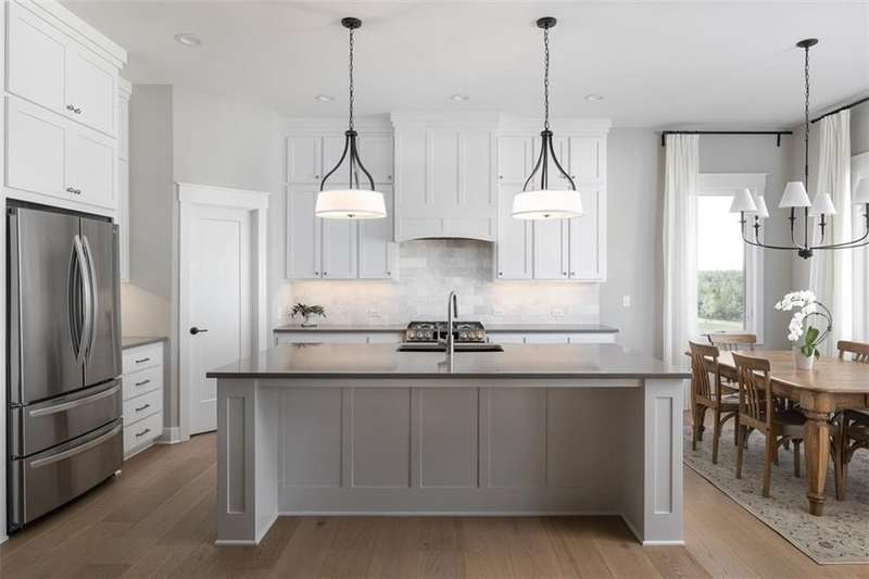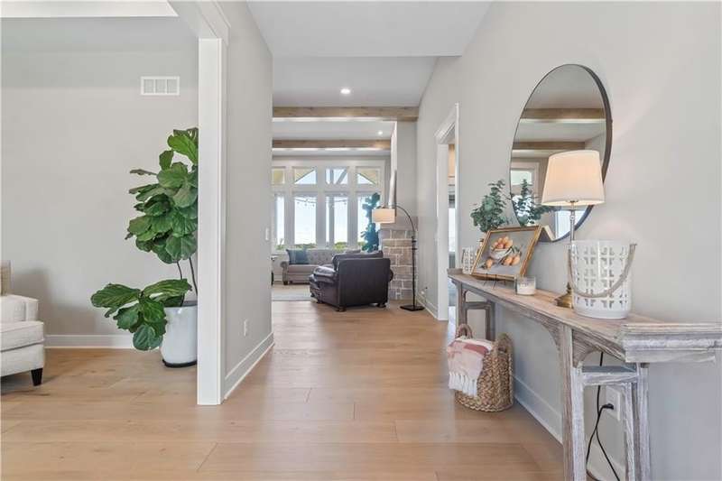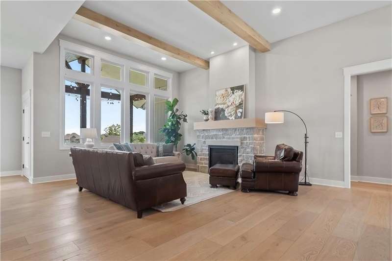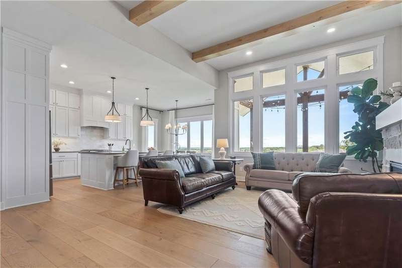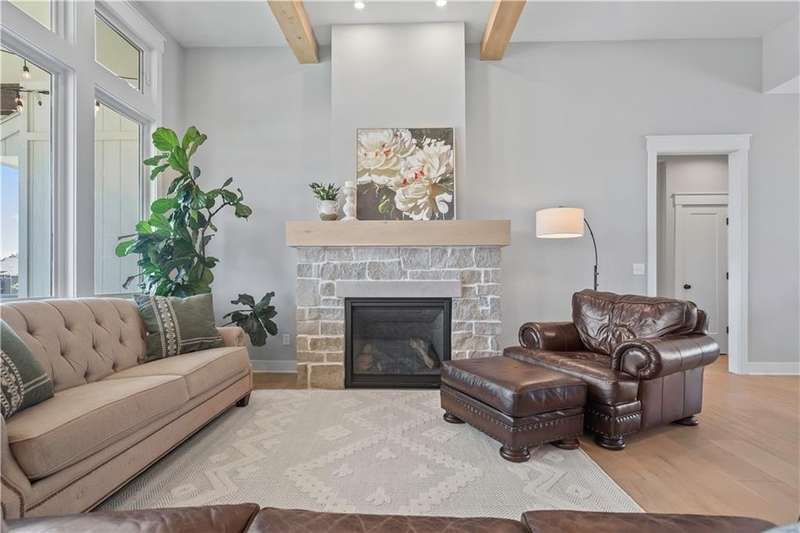 Your 2023 custom-built dream home has it all—5+ bedrooms, an office (or two), a game room, and a flex space that bends to your lifestyle as a formal dining, sitting room or office on main level. The heart of the home beats on the main level, with the laundry tucked neatly and quietly in the basement—freeing up space for an open, airy layout you’ll actually live in. The kitchen steals the show with LG appliances, quartz island, and gas cooktop, flowing into a vaulted great room with wood beams, stone fireplace, and all the natural light. The primary suite is a true retreat with soaking tub, quartz vanities, walk-in shower, and walk-in closet. Head downstairs for the fun stuff: a bright walkout rec room, wet bar, game room, covered patio, two more bedrooms and a full bath and a bonus flex space with laundry closet and storage access. All this in Bristol Highlands—near golf, trails, lakes, Lenexa City Center, and highway access. High style, low stress, and priced smart! This home will impress you!!