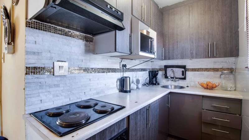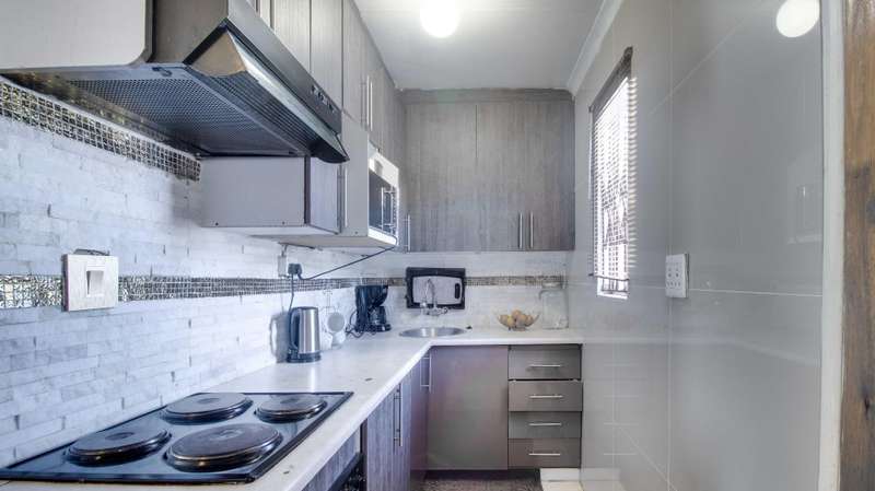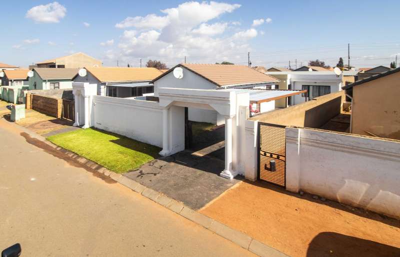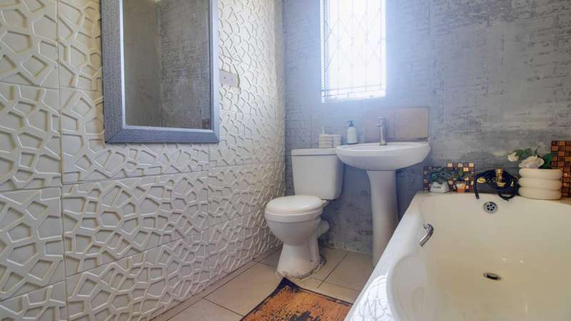 Discover this unique opportunity to own a versatile property featuring two homes within a private, secure yard. The main house offers 3 bedrooms, a comfortable lounge, and a full bathroom with a relaxing bathtub. The modern kitchen is equipped with built-in cupboards, a stove, oven, and hob, making meal preparation a breeze. The second house provides 2 bedrooms, a generous lounge area, and two bathrooms, each with a convenient shower. This layout is perfect for extended family, guests, or generating rental income. Outside, you'll find a beautifully maintained garden and paving that enhance the property's curb appeal. For parking, there's a carport and ample open space to accommodate up to 5 additional vehicles. The high boundary walls and a secure boom gate ensure privacy and safety, preventing outsiders from seeing into the yard. Located in a peaceful and secure area, this property is ideal for a large family seeking space and comfort or an investor looking to maximize rental income from one or both homes. Don't miss this exceptional opportunity!