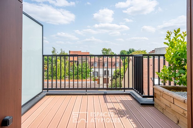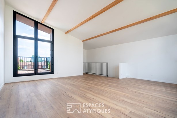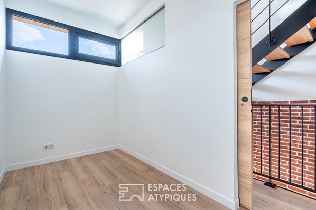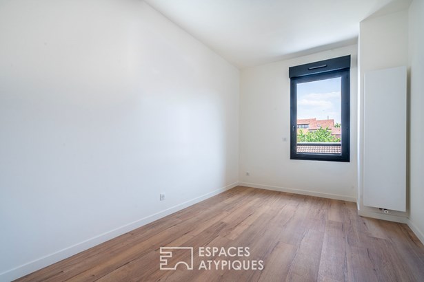 In the heights of Vitry-sur-Seine, on the edge of the Lion d'Or district of Villejuif, this new 120 m2 house rises over three levels, offering a rare opportunity to live in an architect-designed house just a few minutes' walk from the metro (line 7), with the added bonus of uninterrupted views of the Parisian monuments.