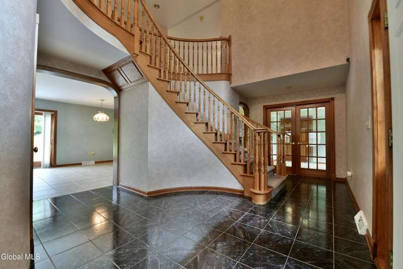Welcome to this exceptional private estate nestled on 52.36 picturesque acres, offering the perfect blend of luxury and functionality. A serene pond and expansive grounds set the tone for this truly special property. Outdoor features include a large Barn with endless possibilites. An inground pool surrounded by stamped concrete patios and gardens. Inside,the home boasts a spacious family room with a stunning floor to ceiling stone fireplace, a sun-drenched porch with radiant heat, and an elegant combination living and dining area highlighted by rich cherry floors. The gourmet kitchen is a chef's dream, complete with granite counters, a sub-zero refrigerator, double wall ovens, large center island, and a breakfast nook. Close to everyday amenities and a short drive to Saratoga Springs.