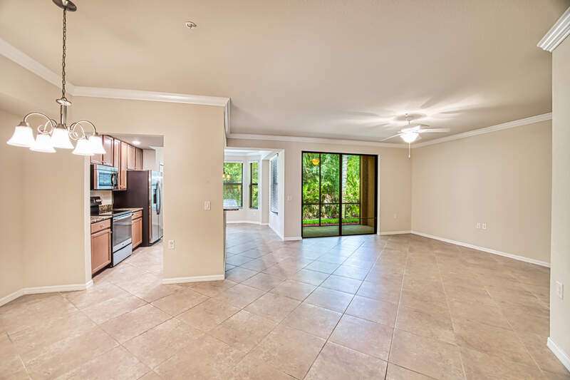 Welcome Home to Palmetto Cove. This spacious and inviting 2 bedroom + den, 2 bathroom condo is located on the ground floor and comes with its own single-car garage-right out front for easy access, plus a side door and opener. Before you even step inside, there's a large screened front lanai-perfect for a comfy seating area to enjoy your morning coffee or unwind in the evening. Inside, the kitchen is a standout with granite countertops, stainless steel appliances, and a cozy bay-window breakfast nook with peaceful preserve views. There's also a formal dining area and a bright, open living space that leads to a private den with double doors-great for a home office or extra guest room. The primary bedroom is spacious and features two walk-in closets, dual vanities, and a walk-in shower. From the living area, sliding glass doors take you out to a second screened lanai, where you can kick back and enjoy the quiet preserve and maybe catch a glimpse of some wildlife. You'll also love the impact windows, plus a full-size washer and dryer right in the unit. Palmetto Cove is a gated community with a clubhouse, heated pool, and spa-and the location is super convenient. You're close to beaches, shopping, dining, golf, medical centers, RSW Airport, and even spring training baseball. This one checks all the boxes-don't miss it!