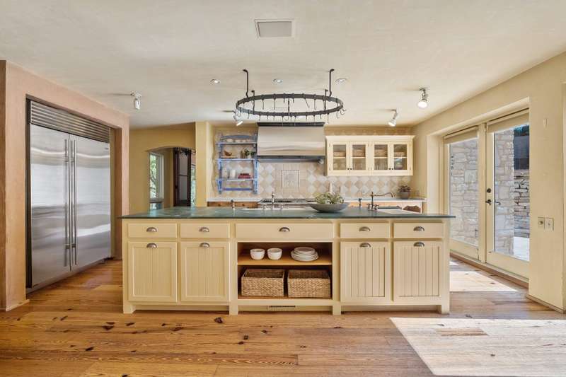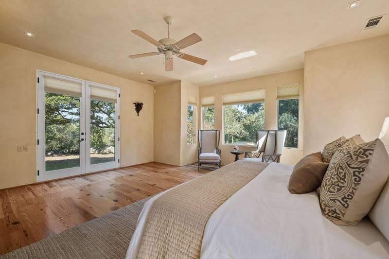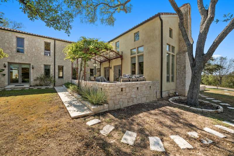 Set on ~ 6 serene acres just moments from Texas' renowned wine country, 14721 Bear Creek Pass evokes the timeless charm of a Tuscan villa with the added luxury of a fully equipped guest house. The property's stone and stucco exterior, arched doorways, and elegant outdoor space create an atmosphere of understated sophistication surrounded by sweeping Hill Country views. Every detail, from the warm tones to the wrought-iron accents, has been thoughtfully designed to capture the ambiance of the Italian countryside while offering the comfort of modern luxury. Inside, the home impresses with exquisite craftsmanship and a sense of grandeur balanced by inviting livability. Soaring ceilings, stunning wood floors, a fireplace, and rich finishes complement expansive windows that fill the interiors with natural light in the living area. The beautiful kitchen boasts stainless steel appliances, a center island, and a desirable built-in pizza oven. The first-level primary suite offers a private haven with French doors leading to the outdoors and a spa-like bathroom featuring a soaking tub, walk-in shower, and elegant dual vanities. A spiral staircase within the suite ascends to a breathtaking library lined with wood shelving, where sunlight pours in through tall windows, creating an idyllic retreat for quiet reading or creative inspiration. The property's guest house features a full bedroom, bathroom, and kitchen with an excellent viewpoint of the property from the hillside. A barn on the property offers the perfect workshop or storage space. Combining European elegance with Hill Country tranquility, this remarkable estate is a rare opportunity to experience both refinement and retreat in one unforgettable setting. Tax and assessed values are estimates for illustration purposes only. All figures should be independently verified.