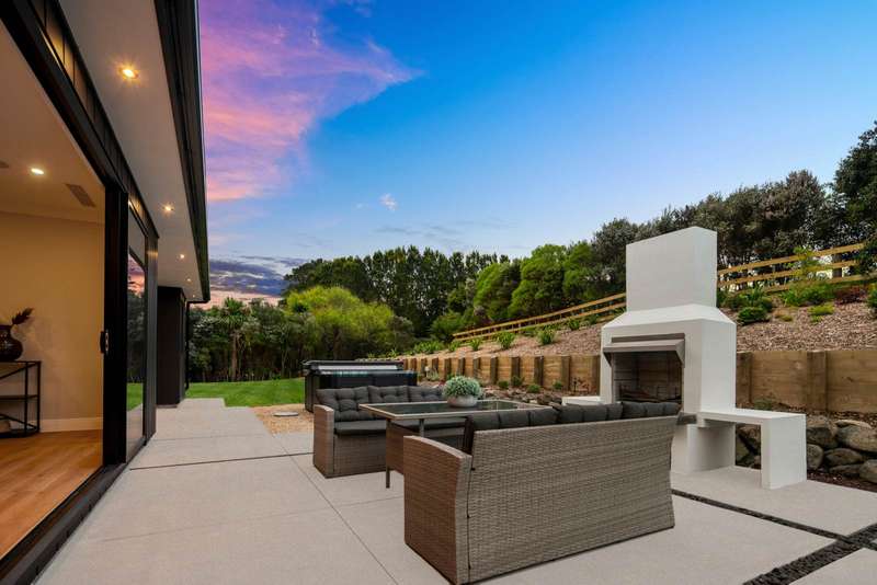 Upon arrival, it's evident that this is no ordinary residence. This brand-new, American Luxury-style home masterfully combines timeless elegance with modern practicality, offering sophistication and comfort for the contemporary family. Set on 1.37 hectares of Future Urban Zoned land, this property offers the serenity of countryside living while being just 10 minutes drive from both Albany and Silverdale. This is a rare balance of privacy, lifestyle, and accessibility. Covered by a comprehensive 10-Year Master Builder Guarantee and a 12-Month Vendor Warranty for complete peace of mind. Boasting approximately 307m² of expertly designed living space, the home features multiple expansive living areas and generously sized bedrooms. Soaring ceilings, bespoke cabinetry, premium finishes, and refined interior detailing elevate every aspect of the home. At its heart lies a designer kitchen, complete with a hidden scullery, perfect for entertainers and families alike. The adjoining dining space flows effortlessly into the central living hall, where a statement fireplace and panoramic rural views create an atmosphere of warmth. The layout is intelligently zoned: one wing holds a private two-bedroom guest suite (with a bar and wine cabinet), and the opposite wing hosts three further bedrooms, including a sumptuous master suite with ample privacy. Step outside to discover your own resort-style sanctuary. The landscaped grounds include a six-car front parking area, a spacious backyard with a spa, outdoor fireplace, and a custom golf putting green—designed for both relaxation and recreation. For those seeking lifestyle farming, the adjacent land is ideal for keeping animals. With the upcoming Penlink Highway set to significantly enhance regional connectivity, this property presents not only an exceptional lifestyle opportunity but also outstanding long-term investment potential. Conveniently located just 30 minutes from Auckland’s CBD, and zoned for highly regarded schools including Dairy Flat School, Albany Junior and Senior High Schools, and Orewa College, this property is perfectly positioned for family life and future growth. An extraordinary home in a strategic location—experience the ultimate in rural luxury. Auction: 8-12 The Promenade, Takapuna on Thursday 6 November 2025 at 10:00AM (unless sold prior)
