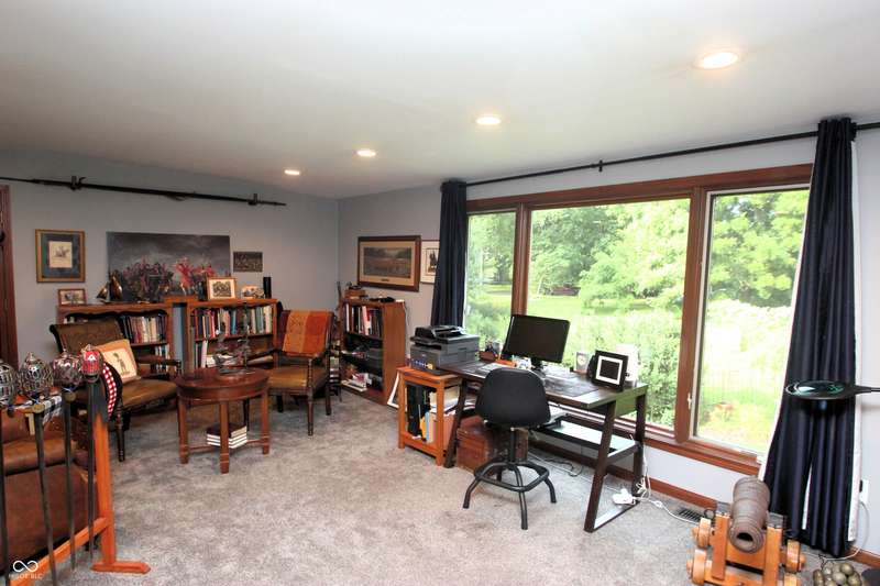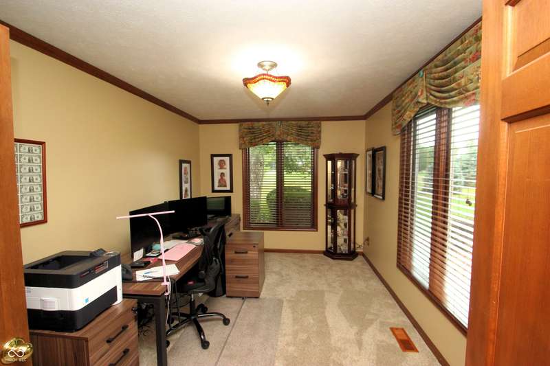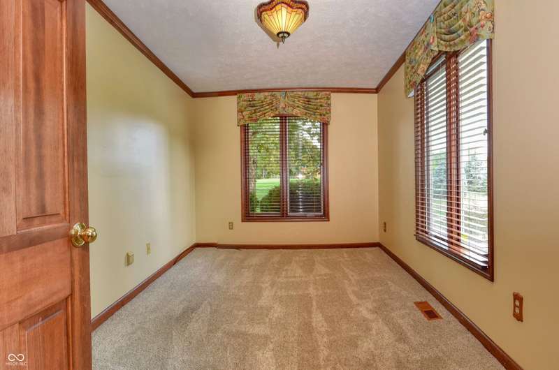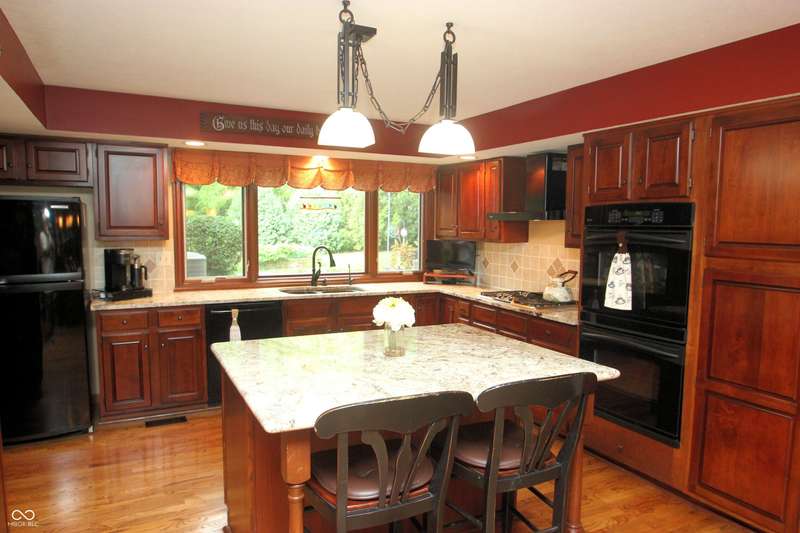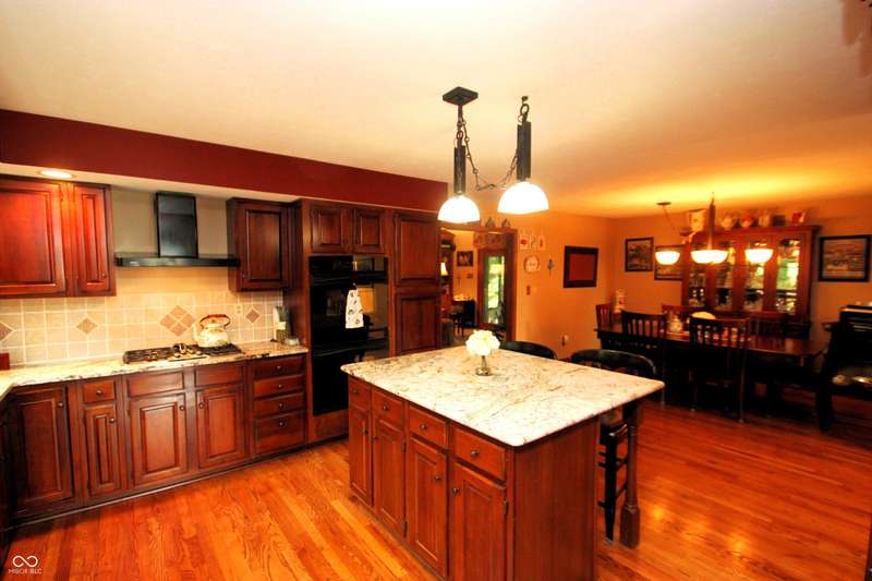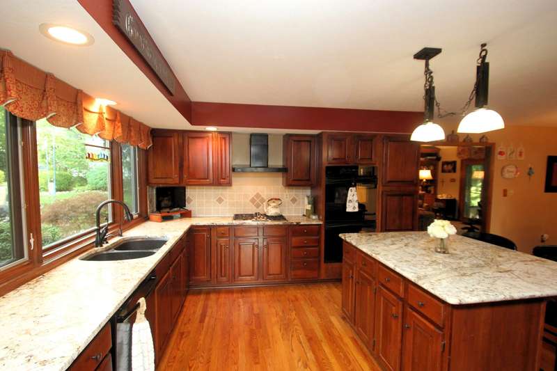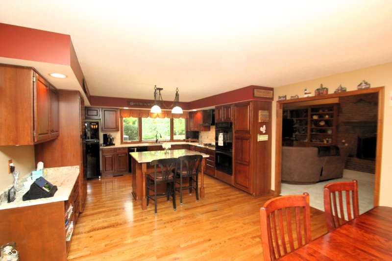Gorgeous 4BR/2.5BA on golf course! 2 story entry with den/office. Inviting large center isle kitchen, totally remodeled with double oven, granite countertops, & dining room. Hardwood throughout, top of the line everything. Awesome family room with cathedral ceiling - floor to ceiling gas log brick fireplace with French doors into the Sunroom. Bookcases throughout. Elegant formal dining room and library with gas log fireplace. Remodeled Master suite with cathedral ceiling. Adjacent BR to mstr has been converted to ladies dressing room, and can be converted back. Beautiful wooded/private lot, huge remodeled bonus room over garage. Huge 3-car garage. Close to lake. Lovingly maintained!