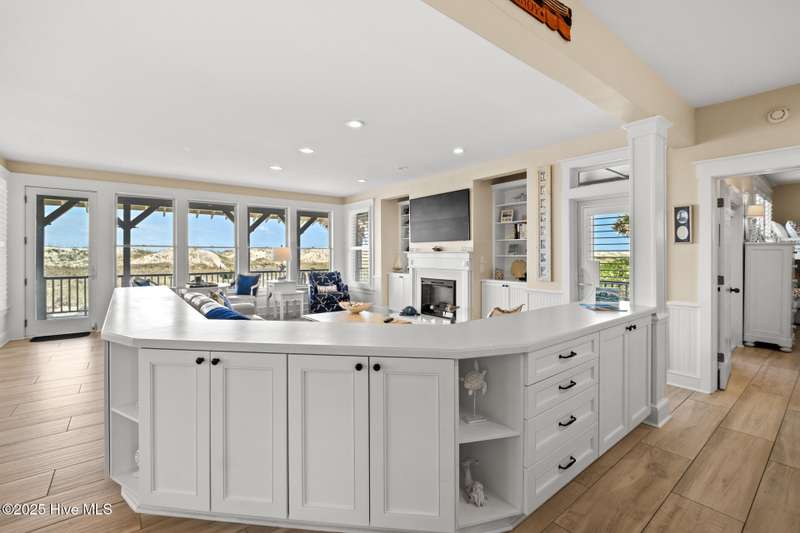 Oceanfront Shifting Sands is the ultimate in BHI resort living. Oceanfront with a boardwalk leading you to the dunes and the enjoyment of beachfront living . Long walks for great sunsets and family time . This Executive Oceanfront Beach House has 5+ BR 4 1/2 + 1/2 BA w/Crofter, Large dine at Bar in Kitchen, new stone counters ; Dining Room w/surrounding windows, Large Living in the Leather couches that surround the elec. Fireplace in LR, Oceanfront King Master BR Suite - w/private deck for sunsets, Separate Shower and Garden Tub Ceramic Tile Bath, Second BR Suite upstairs has two Queen Beds & glass surround Shower, On main level Second King Master Suite w/Tub/Shower Combo;, Second BR is a Dorm BR w/sleeping twin/bunks for 7 - A real kids hang out;; Lifestyle BHI Club and Shoals Membership available to purchase Furnished with 2 carts convey - SUNDAY TURN DAY