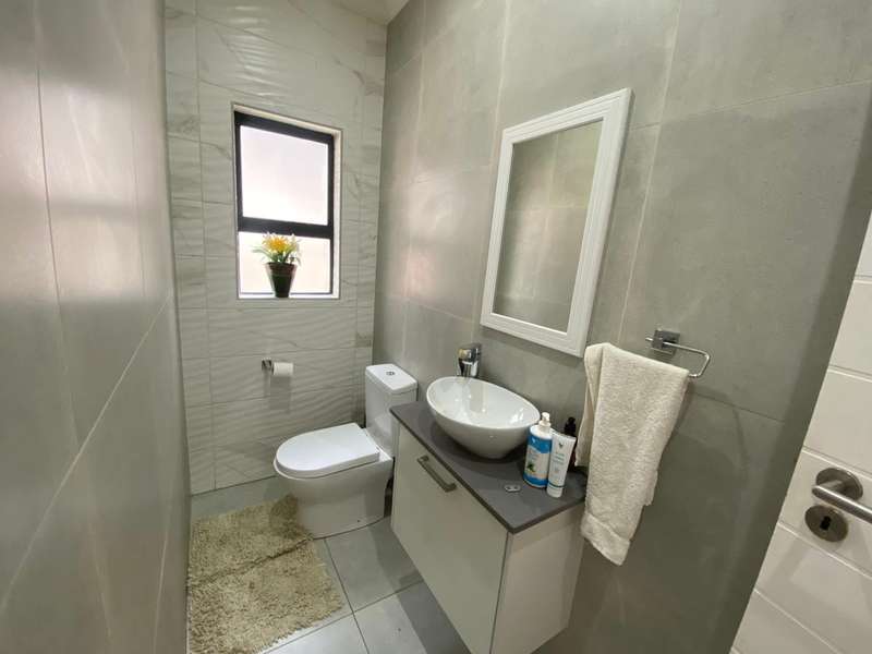 EXCLUSIVE MANDATE!!!!!!!! Welcome to this beautiful, well-designed home that balances both comfort and convenience! As you step inside, you’re greeted by a spacious layout downstairs that includes a garage, a cozy living room perfect for relaxing, and a dining area ideal for family meals. The kitchen is both functional and inviting, offering ample space for all your culinary needs, while a guest toilet on this floor adds to the convenience. Heading upstairs, you’ll find a well-lit study area, perfect for working from home or assisting with homework. This level features three bedrooms, including a luxurious master bedroom complete with an en-suite bathroom and generous cupboard space. The two additional bedrooms share a large, full bathroom, ensuring plenty of room and comfort for everyone in the family. Outside, the property boasts a private garden, ideal for outdoor entertaining or simply unwinding after a long day. Located in a secure estate with 24-hour security, the home provides peace of mind as well as family-friendly amenities, including a playground for children. Plus, you’re just a short walk away from a petrol station, shopping center, and a private hospital, making this the ideal spot for easy living with everything you need right at your fingertips.