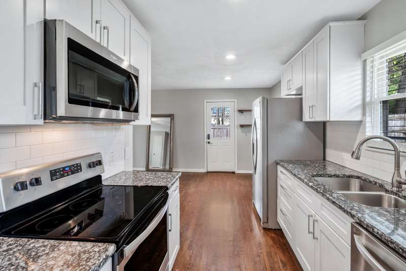This classic 1950's 3 bed/2 bath ranch includes some tasteful updates (kitchen & bathroom), a primary en-suite, a large corner lot (.4 acres), a fenced-in backyard with a deck. Granite countertops, newer appliances, updated windows, hardwoods throughout, new concrete driveway for plenty of parking, open floor plan. Enjoy watching nature in your huge front yard from the lovely, large picture window. Also: great proximity to existing East Nashville gems: Folk, East Nashville Beer Works, Red Headed Stranger, Dive Motel, etc. Future East Bank and Dickerson Pike projects include Salt Ranch & the future East Bank/River North Corridor/Oracle's global headquarters.